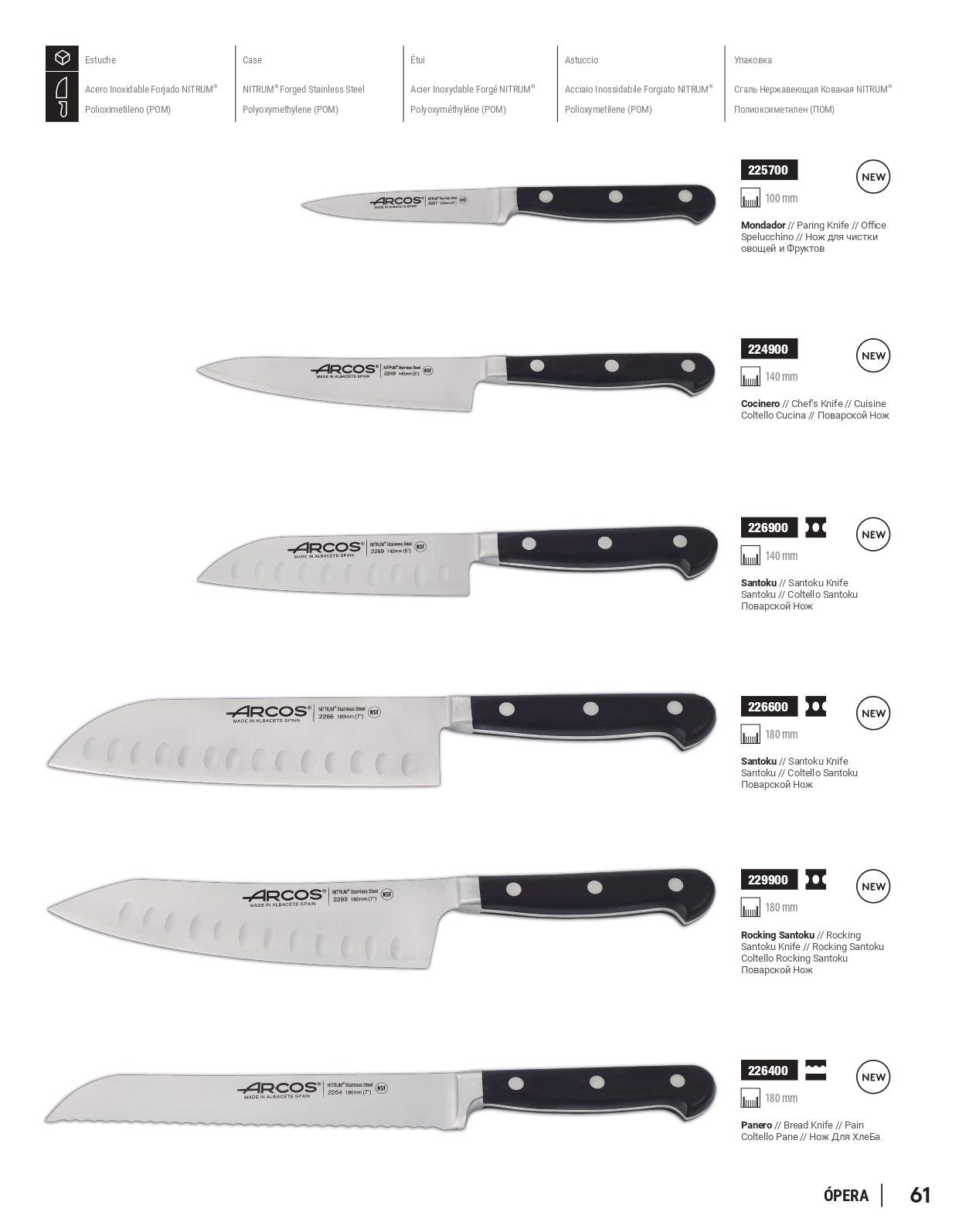 Cuchillos con hoja de acero inoxidale forjado NITRUM y mango de polioximetileno. Cuchillo mondador, cocinero, santoku, rocking santoku y panero.