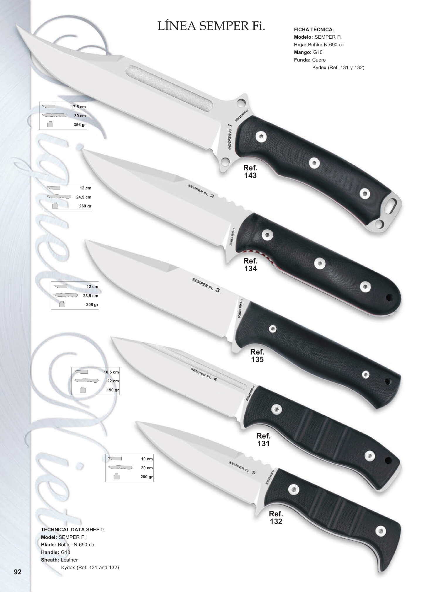 Cuchillo militar Nieto Semper Fi. Con hoja de acero Böhler N690Co y mango de G10 negro.