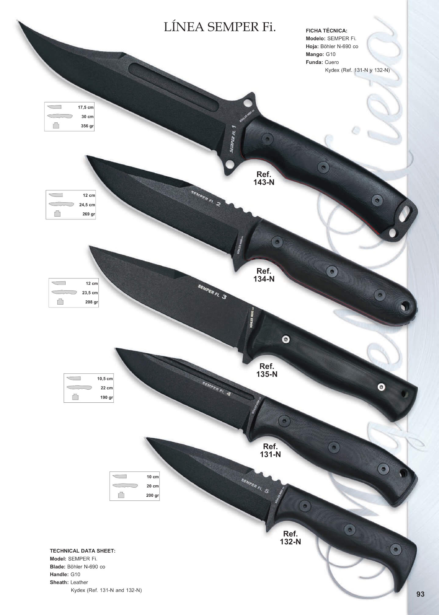 Cuchillo militar Nieto Semper Fi. Con hoja negra de acero Böhler N690Co y mango de G10 negro.