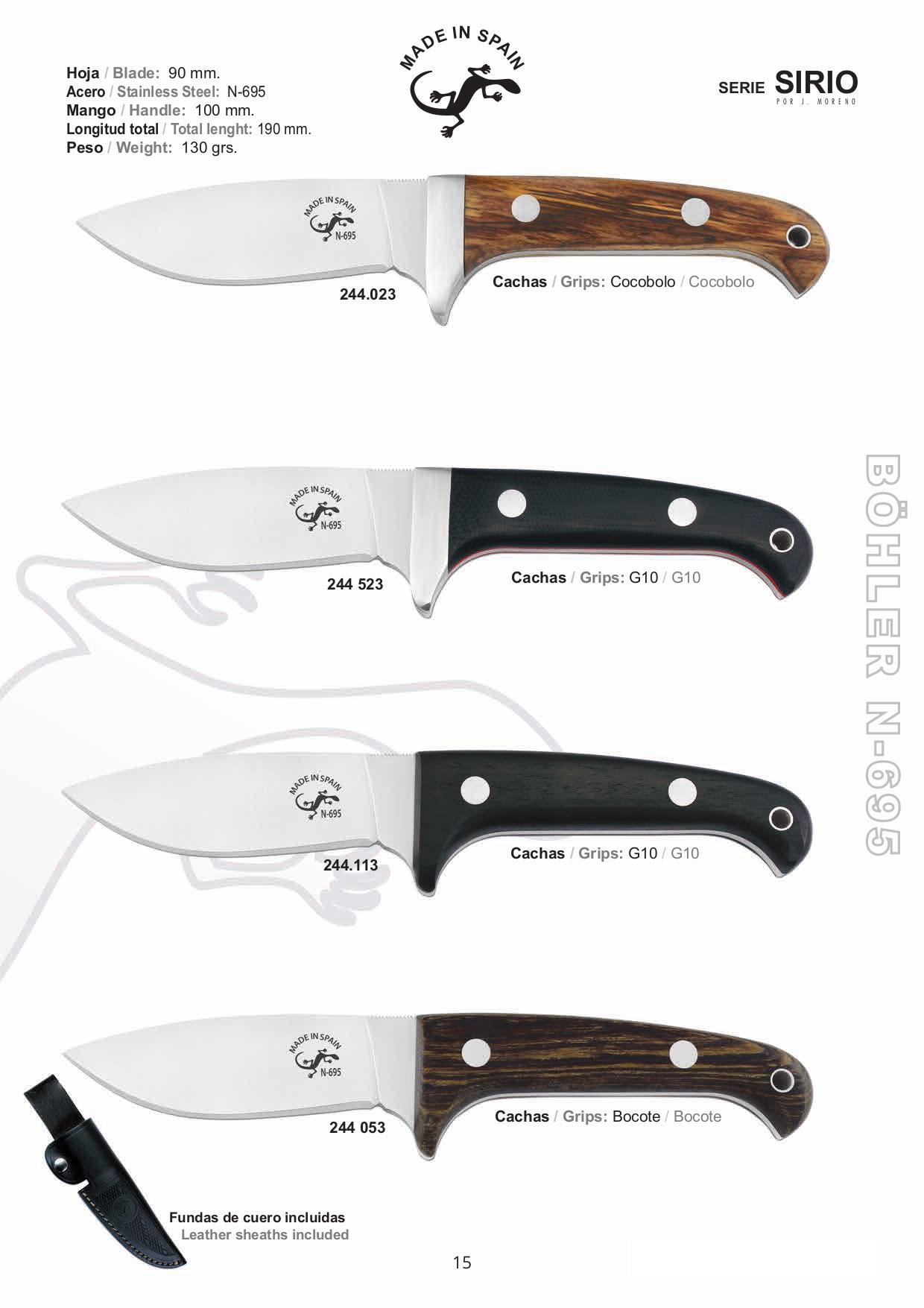 Cuchillos tácticos de la fábrica Salamandra. Con hoja de acero N-695 de 9 cm. mango de 10 cm, longitud total 19 cm. Peso 130 gr. Funda de cuero incluida.