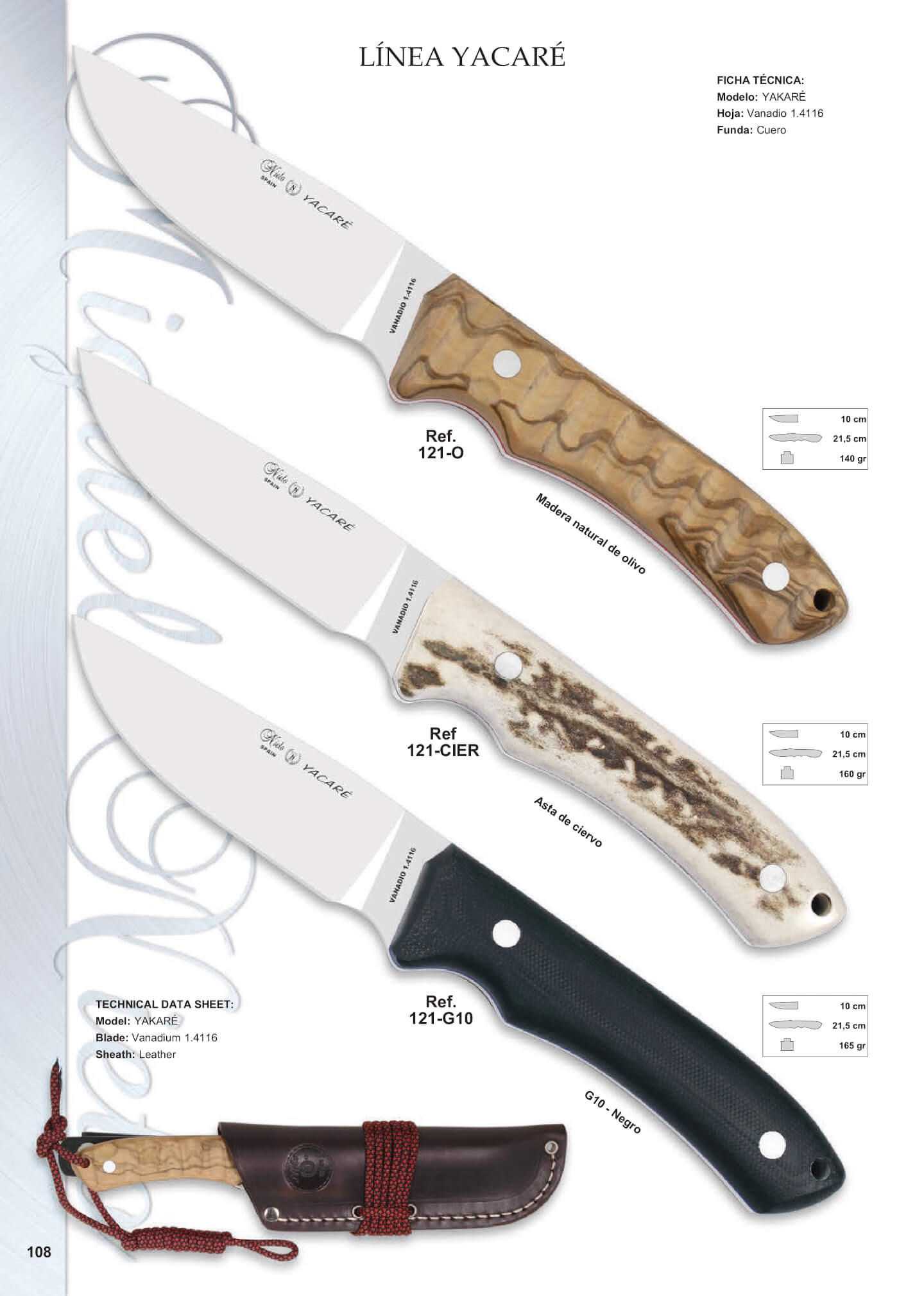 Cuchillo táctico Nieto Yacaré. Con hoja de acero Vanadio 1.4116 y funda de cuero. Un cuchillo enterizo de 10 cm de hoja con vaciado plano.