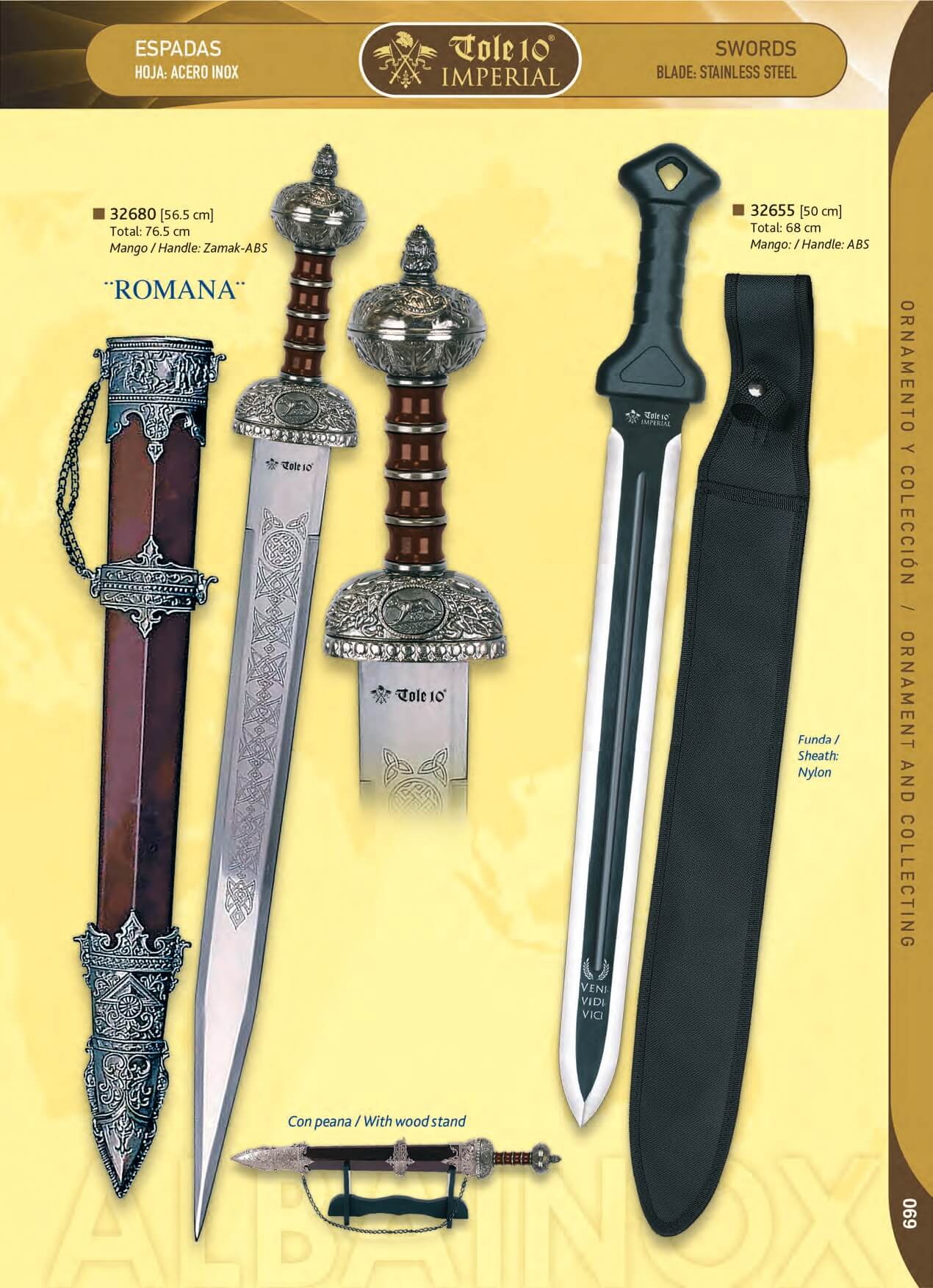 Espada romana con hoja de 56.5 cm y mango de zamak y ABS
