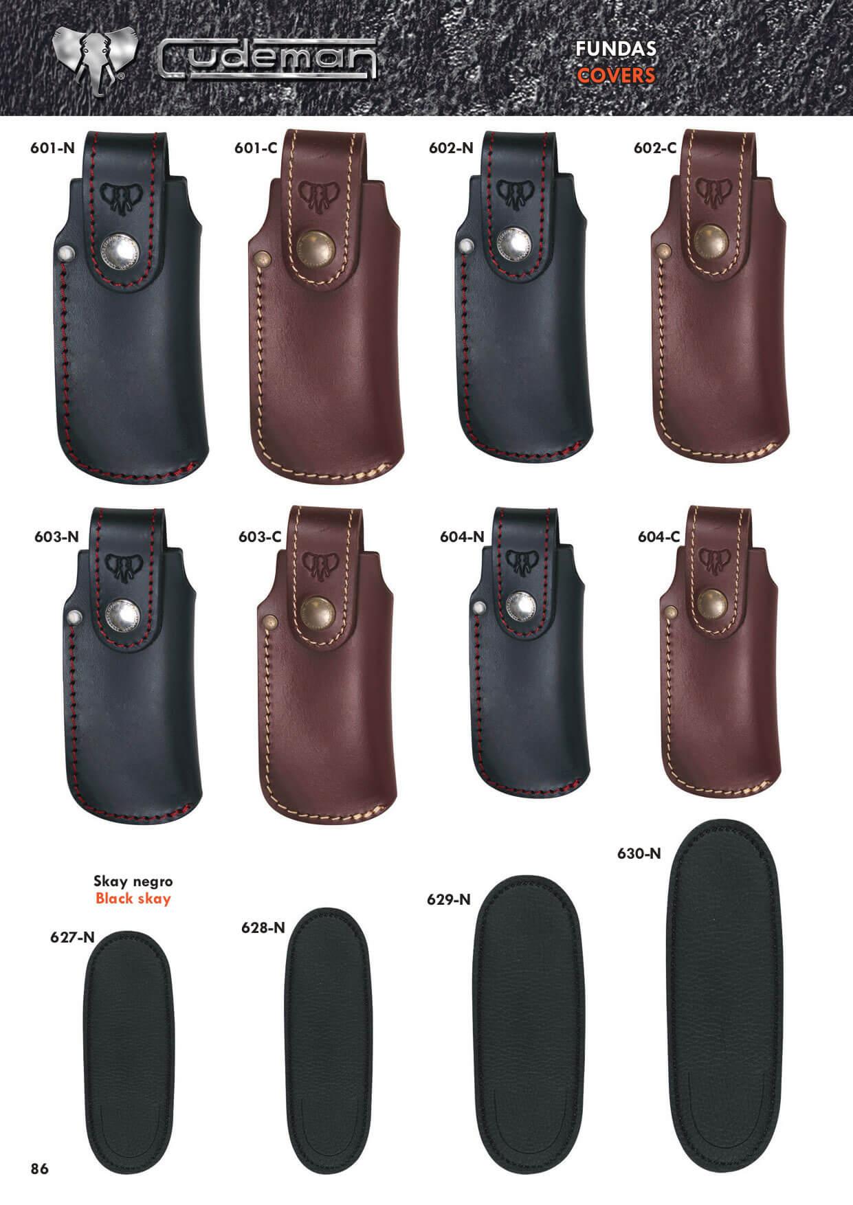 Fundas para navajas, en cuero negro o marrón.