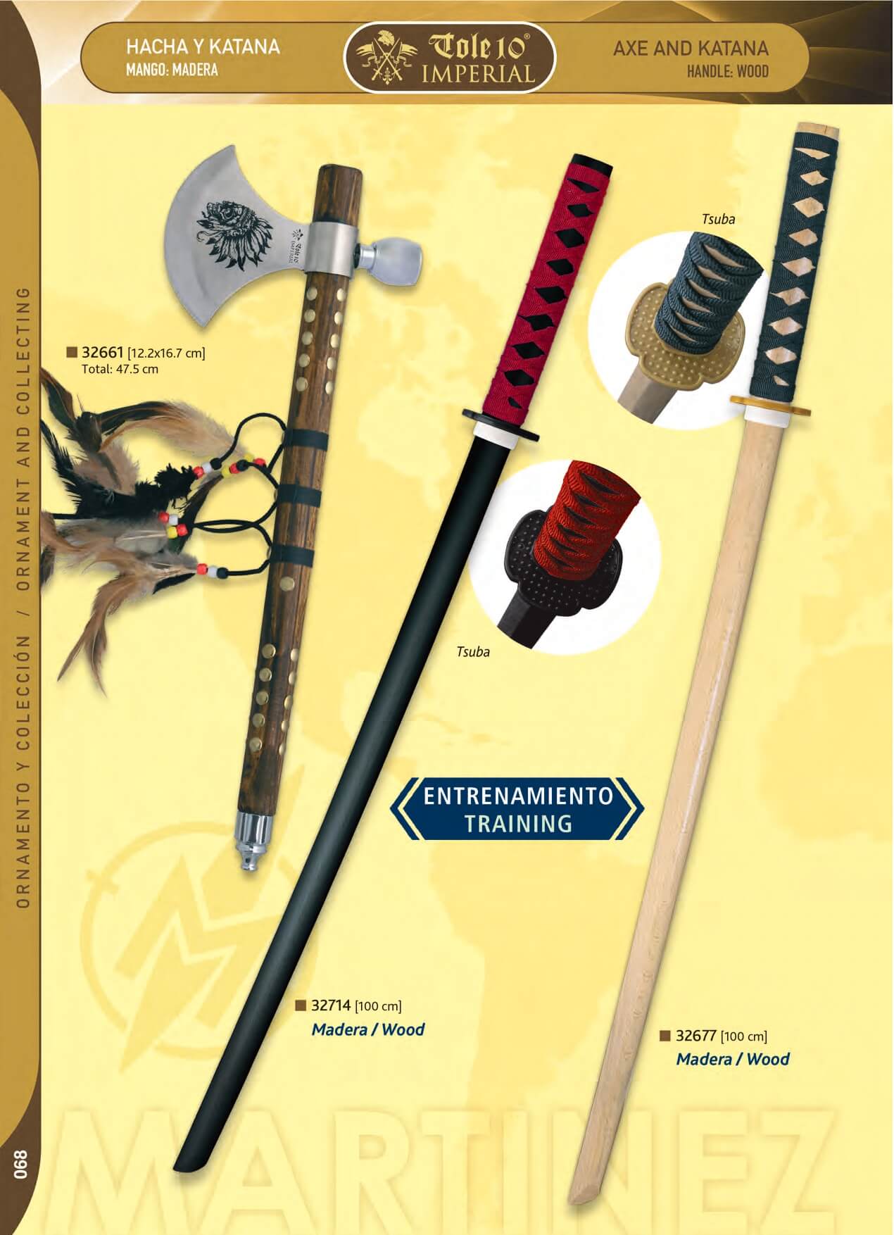 Katana de entrenamiento de madera con una longitud total de 100 c...