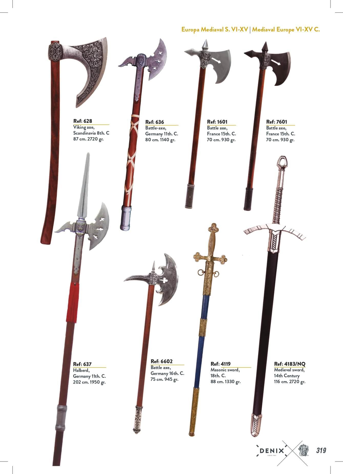 Réplicas de hachas alabardas y espadas Europa medieval S. VI-XV