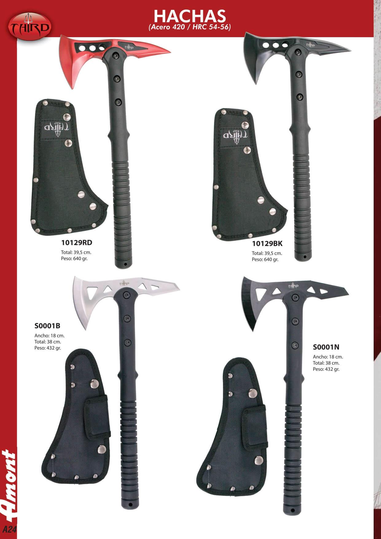 Hachas con hoja de acero 420 y mango de ABS negro. Con funda de nylon.