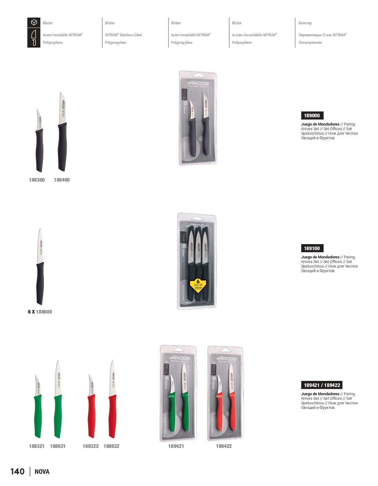 Juegos de cuchillos mondadores, fabricados con acero inoxidable Nitrum, y mango de polipropileno.