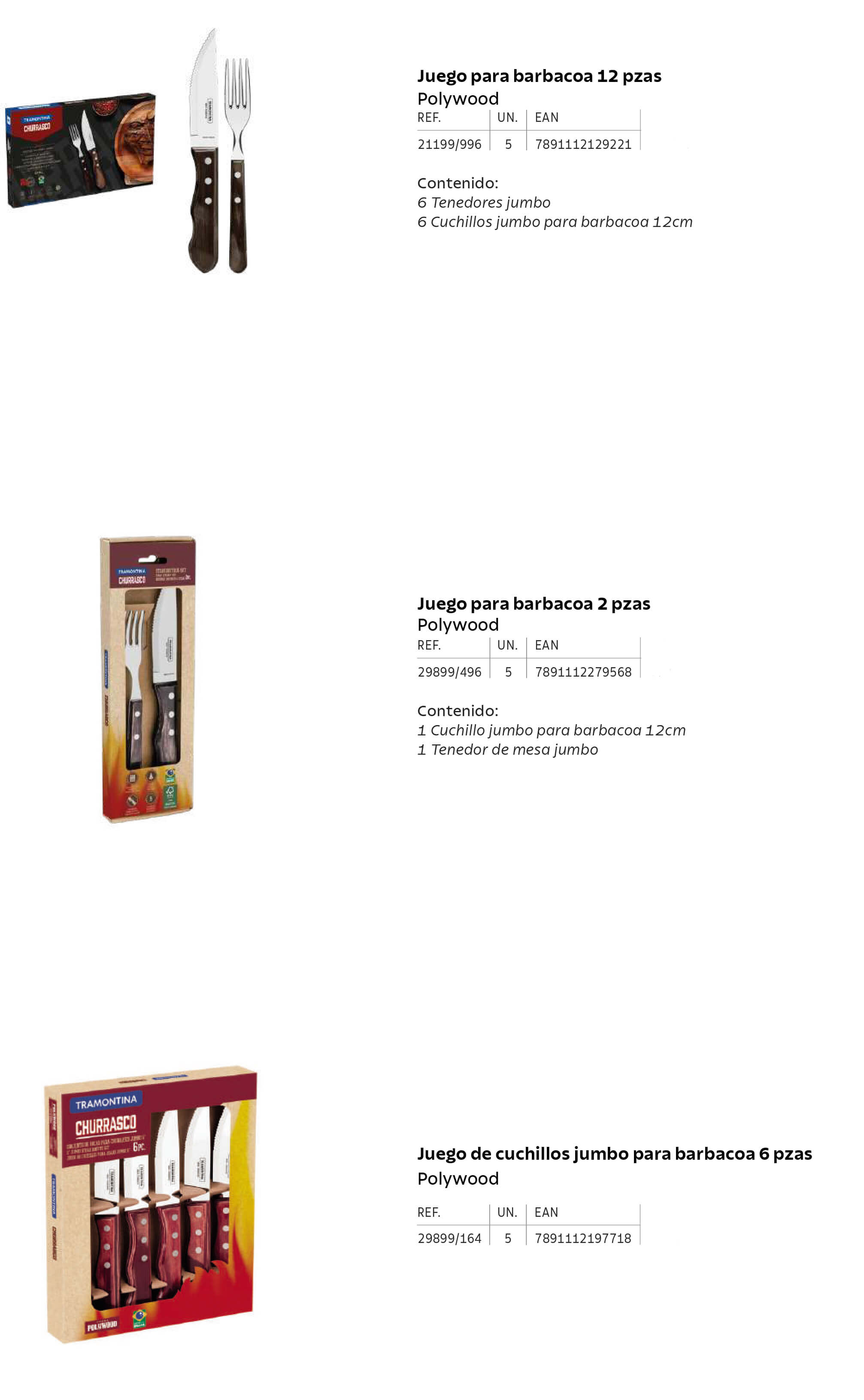 Juegos de cuchillos para barbacoa o para tu cocina con tenedores y cuchillos chuleteros. Diferentes tamaños de juegos, desde 12 a 2 piezas. Con ellos podrás preparar unas barbacoas perfectas con amigos o familia. Piezas de acero inoxidable y madera polywood.