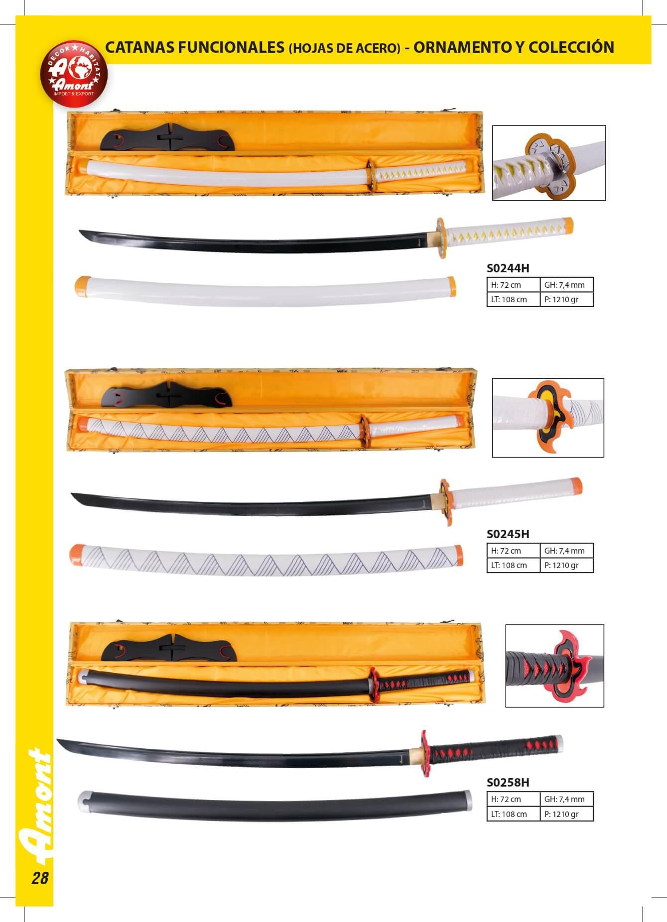 Demon Slayer Katana S0244H empuñada por Agatsuma Zenitsu réplica no oficial 108 cm Hoja de acero al carbono AISI 1045 acabada en negro, con vaina blanca con engarces en color naranja, mango con encordado blanco e imitación de piel de raya de color naranja, con caja de madera forrada.