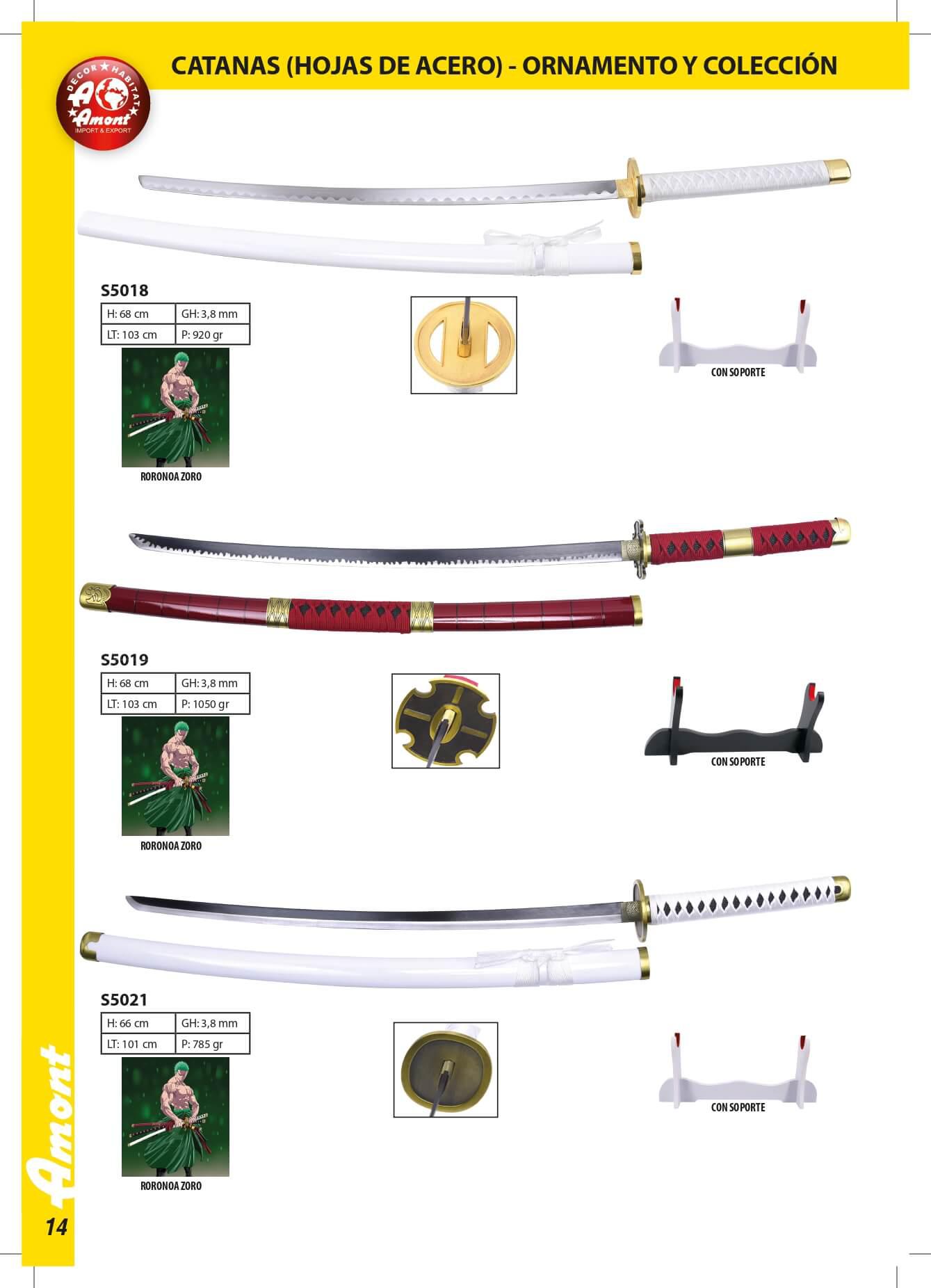 Katana S5018 Shusui Wado Ichimonji de Zoro de One Piece de 103 cm hoja de acero acabado satinado, mango con encordado blanco, con soporte.