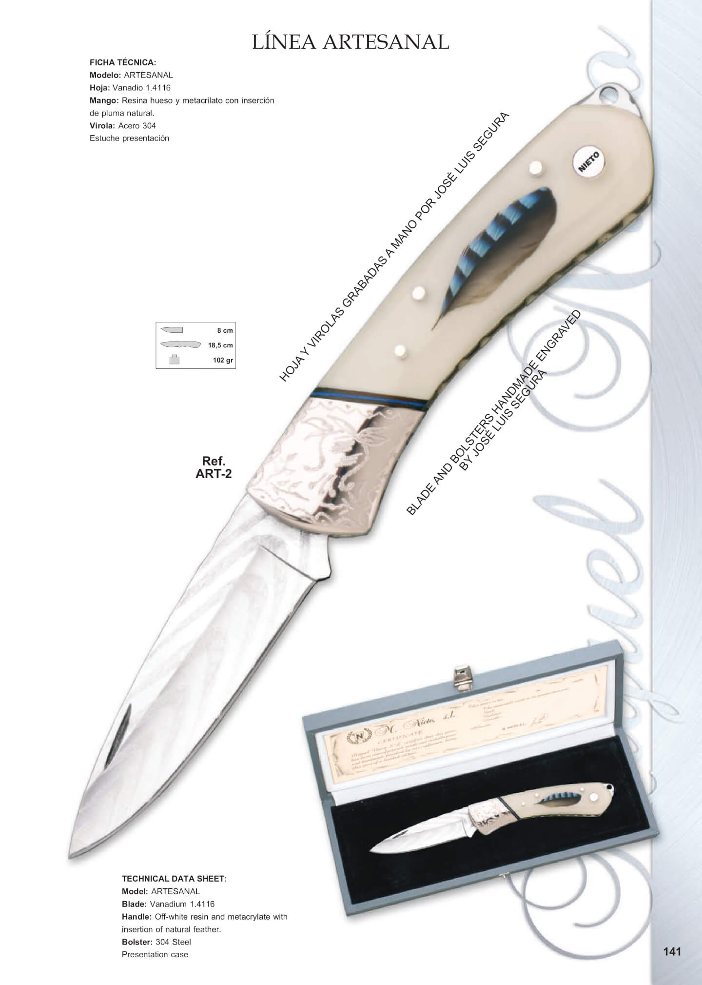 Longitud hoja 8 cm. Total 18,5 cm. Peso 102 gr.