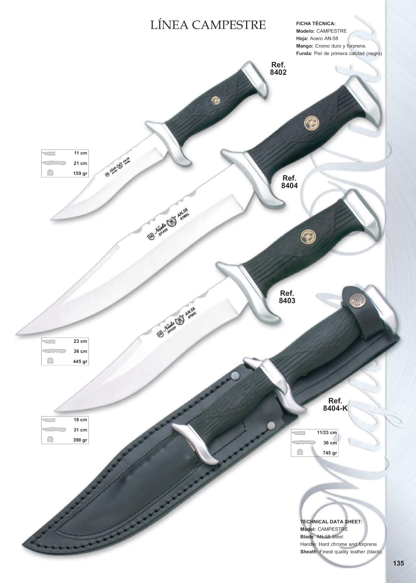 Longitud de la hoja: 23 cm. Longitud total: 36 cm. Peso: 445 grs.
