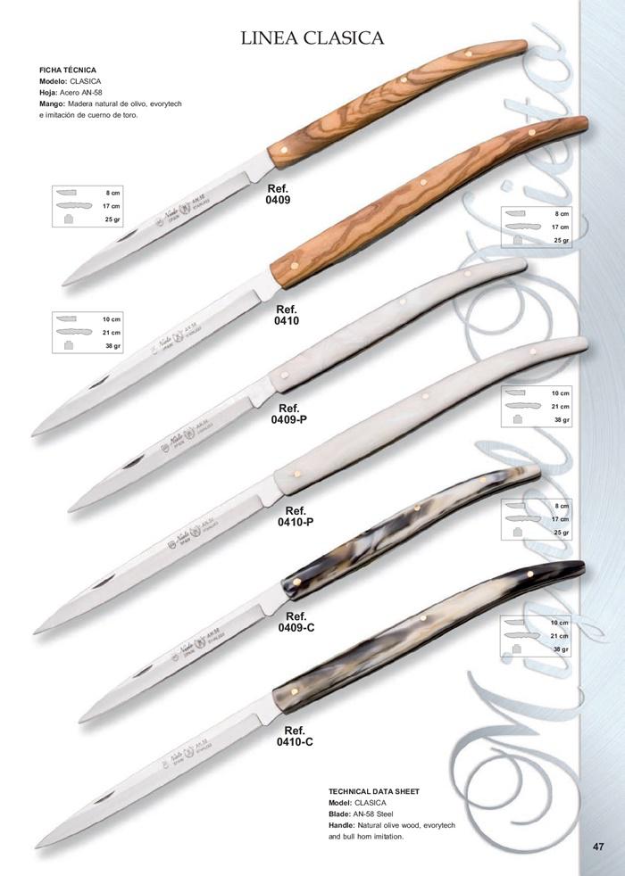 Hoja de acero AN58, mango de madera natural de olivo o evorytech o imitación de cuerno de toro. 0409