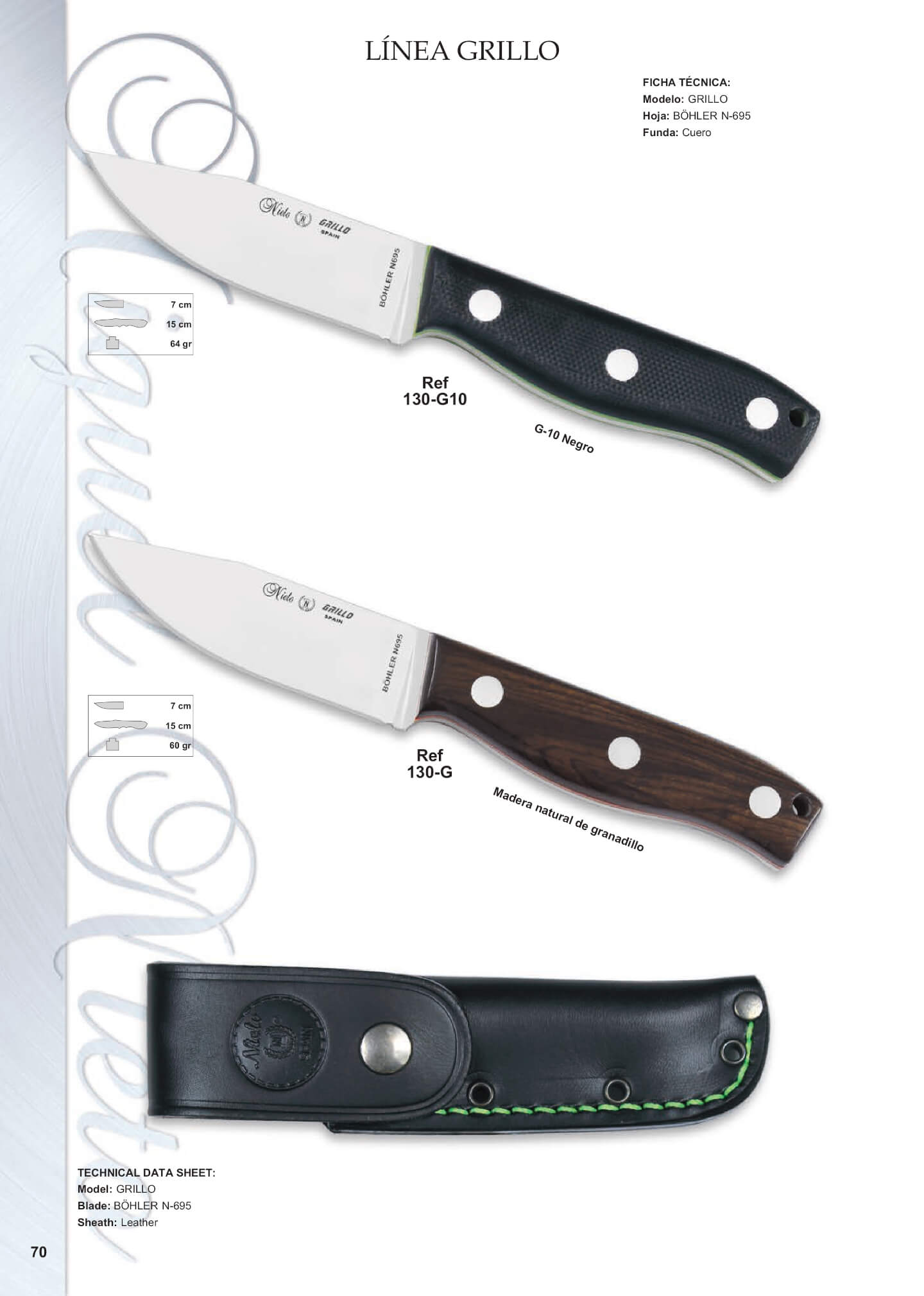 Hoja de acero Böhler N695 de 7 cm. Mango de madera natural de granadillo o de G10 negro.