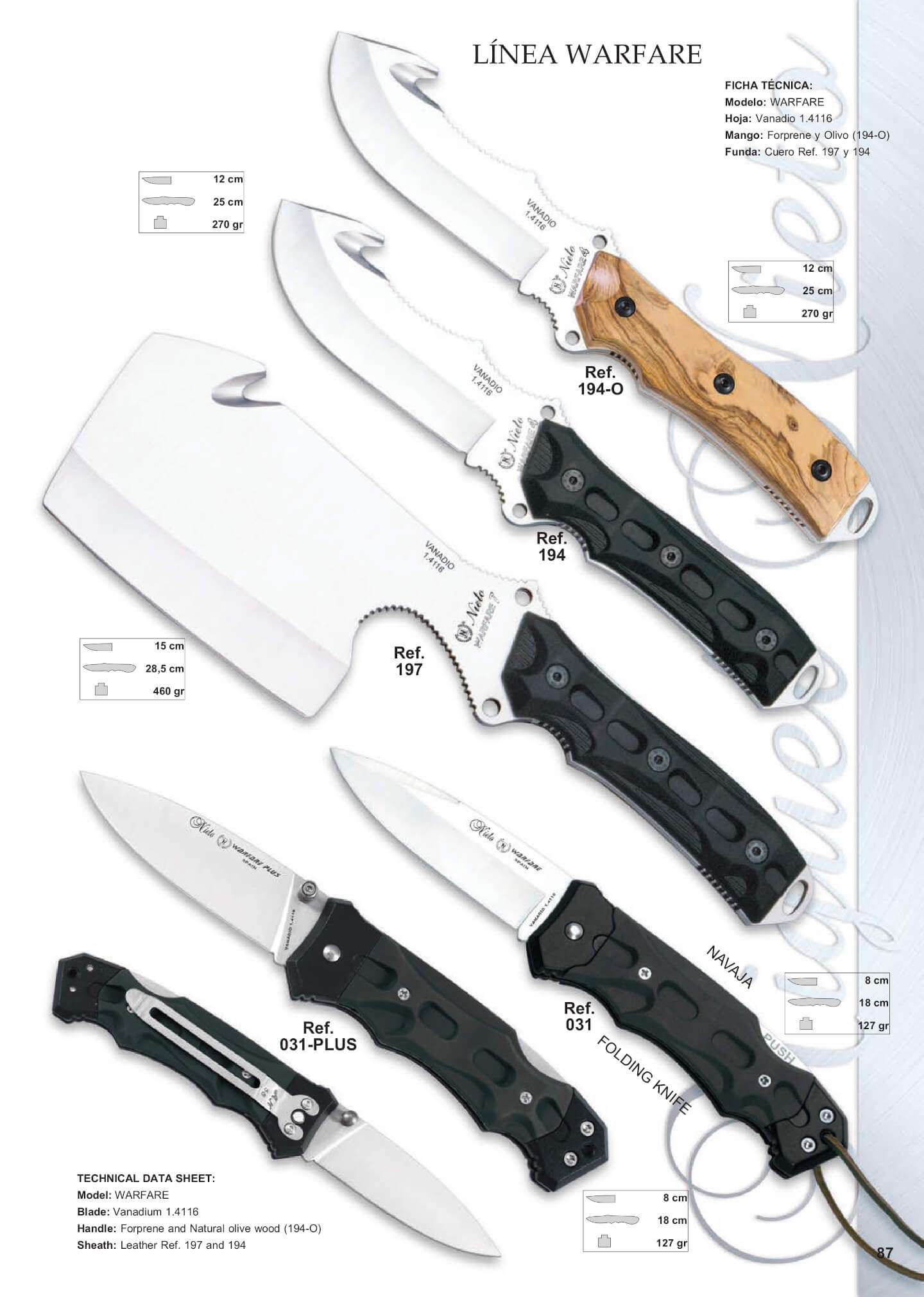Cuchillos de supervivencia WARFARE 4, 8 y 9 "M. Nieto". Hoja: acero Vanadio 1.4116