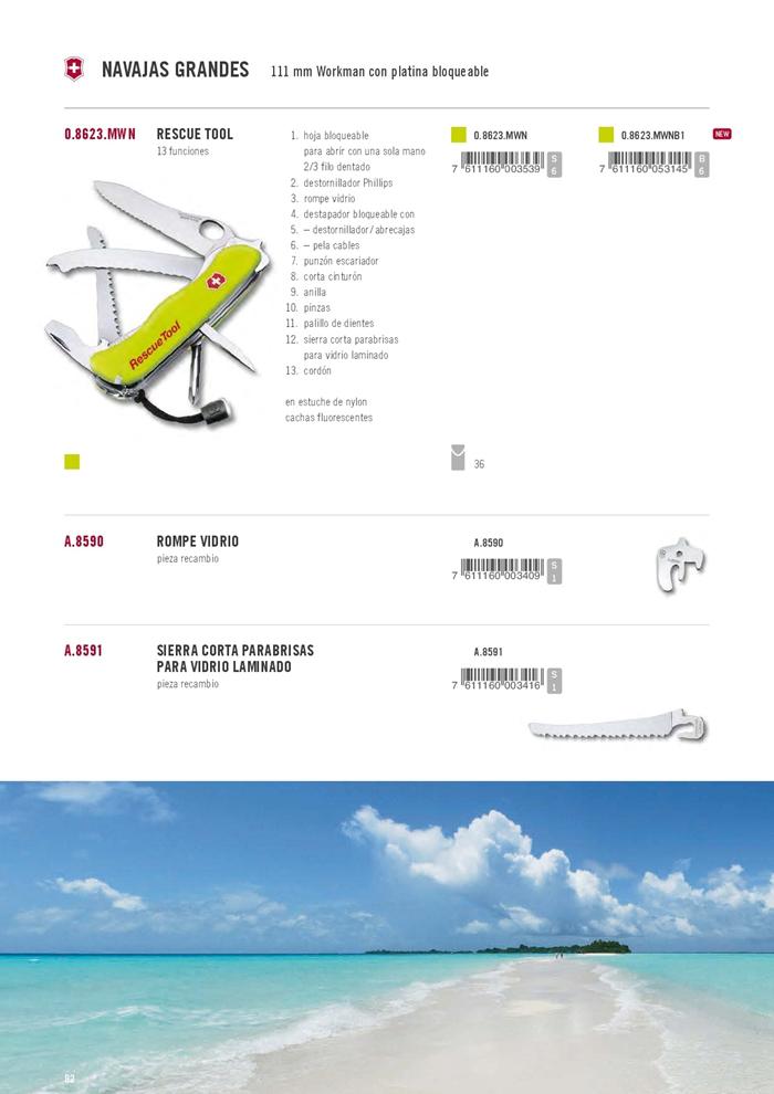 Navaja de bolsillo diseñada junto con rescatistas profesionales, diseñada para zurdos y diestros. Cachas fluorescentes para encontrarla en cualquier situación, presenta 13 funciones: