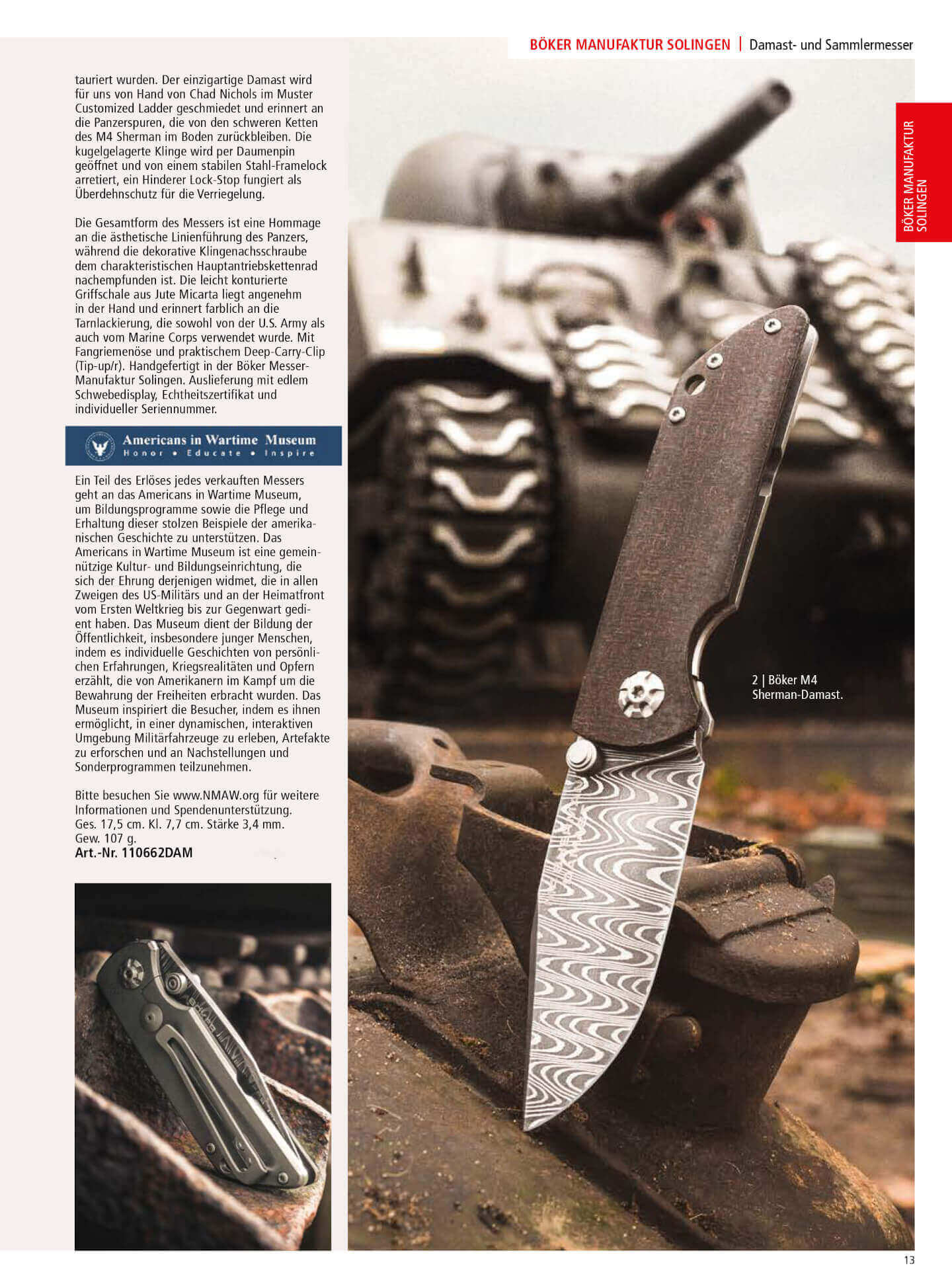 La navaja M4 Sherman es una navaja robusta y compacta con hoja de acero damasco de 6.2 cm y mango de micarta. Una navaja de colección fabricada en Solingen.