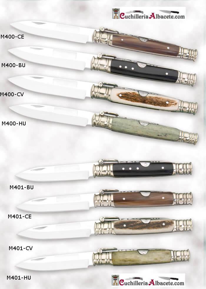 Navajas machete, virola y rebajo en alpaca, hoja de acero de Damasco o acero 440