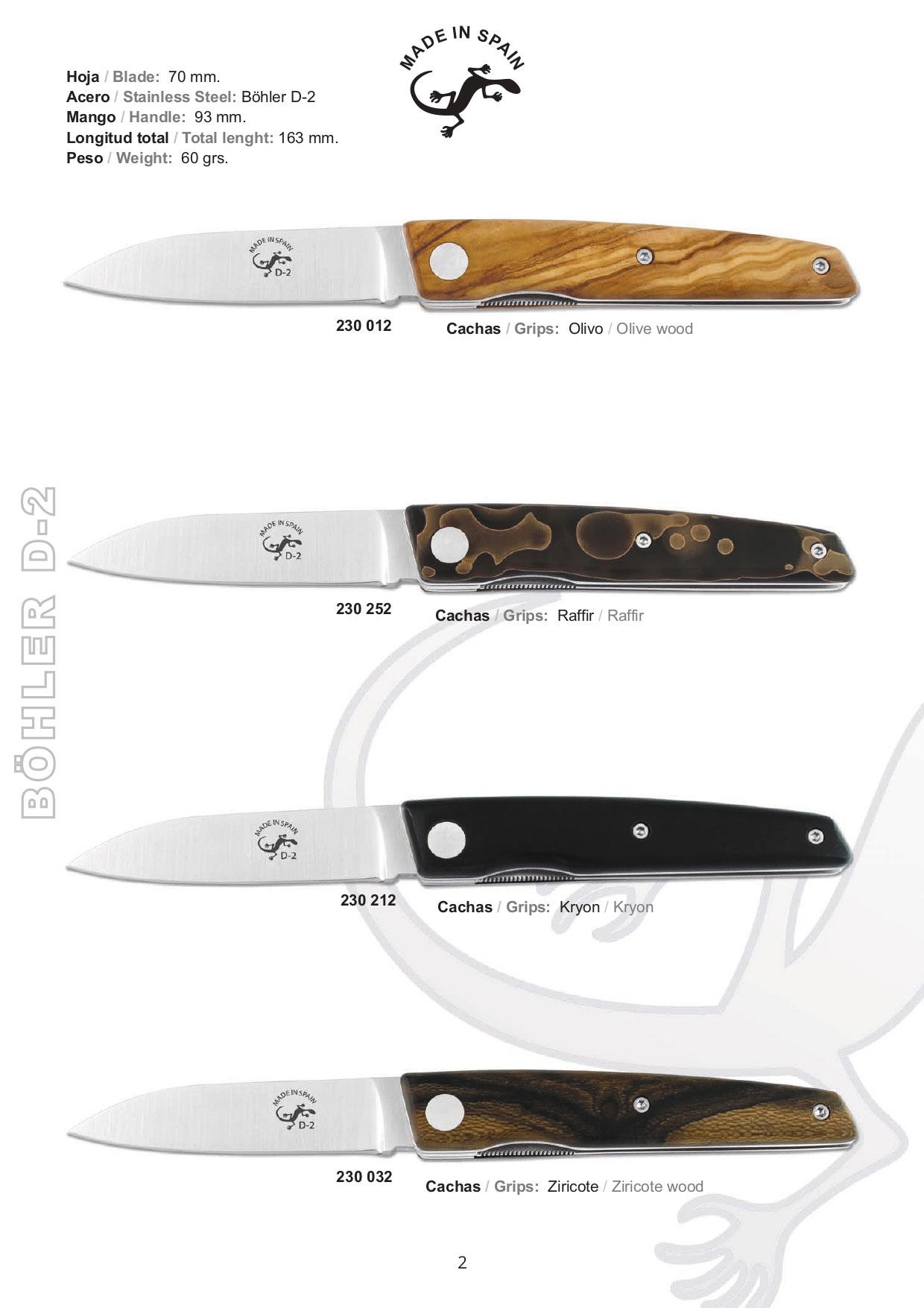 Navajas Salamandra con hoja de acero Böhler D-2 de 7 cm.