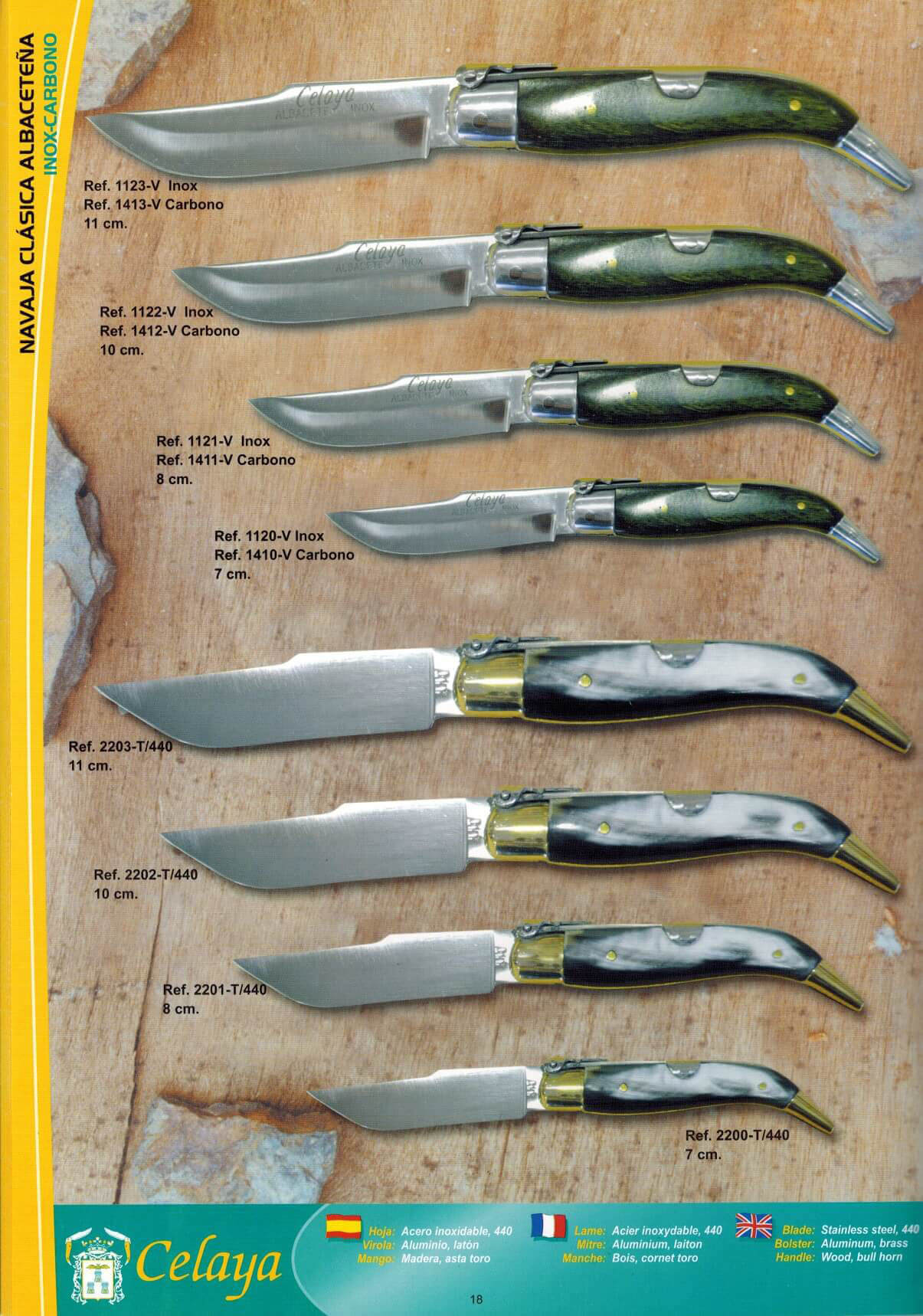 Navaja clásica albaceteña con hoja de acero inoxidable 440 de distintos tamaños.