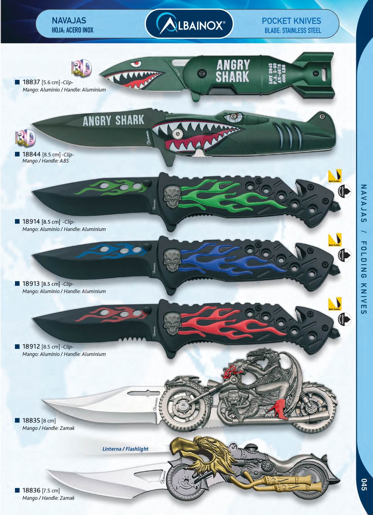 Navaja Angry Shark con mango con forma de bomba de aluminio y hoj...