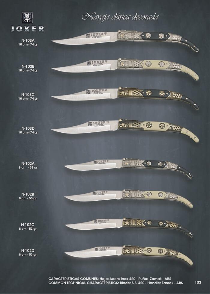 Navaja clásica Joker con puño de zamak negro decorado y hoja de 8...