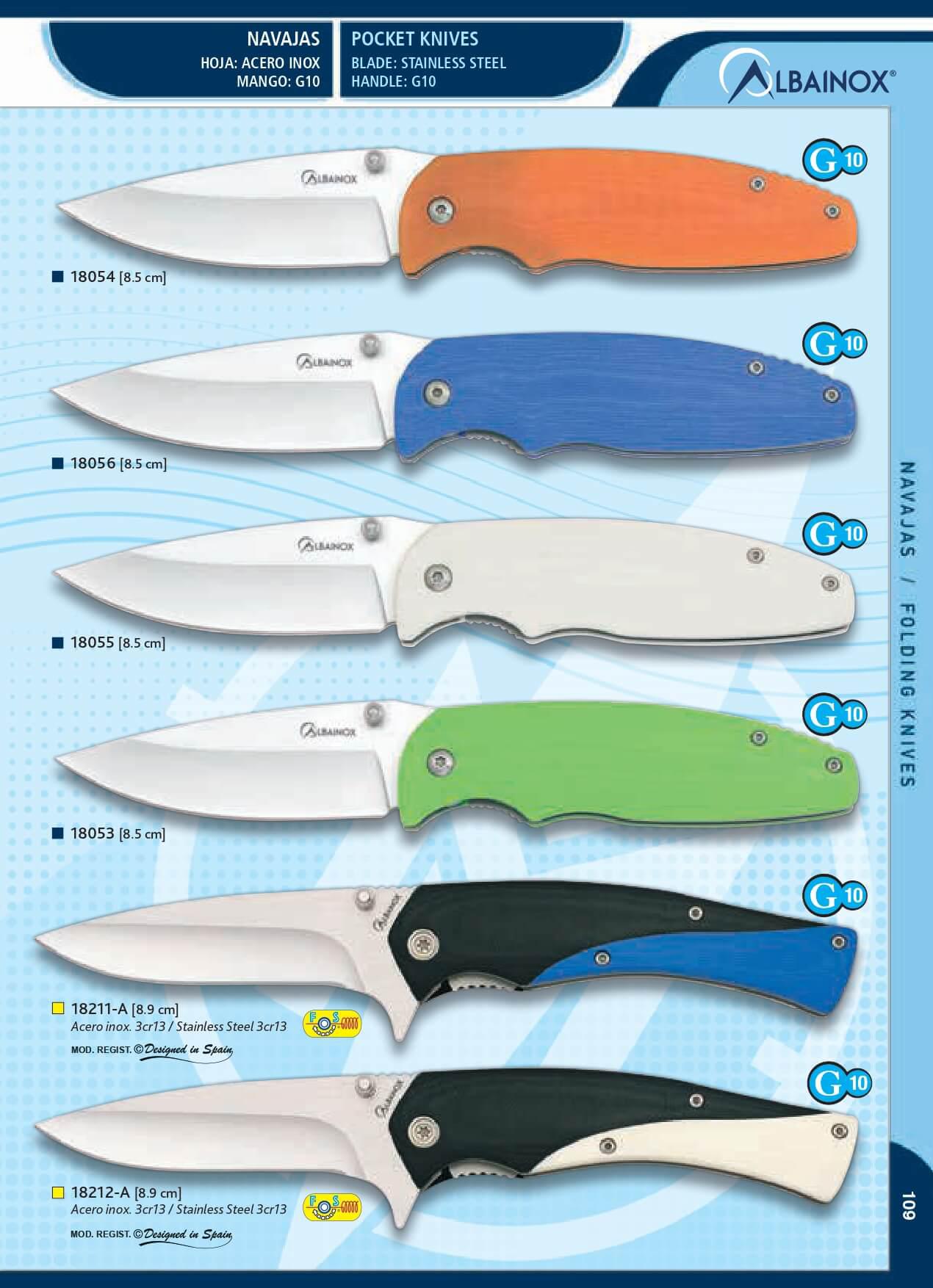 Navaja Albainox con mango de G10 de color azul de 11,4 cm y hoja ...