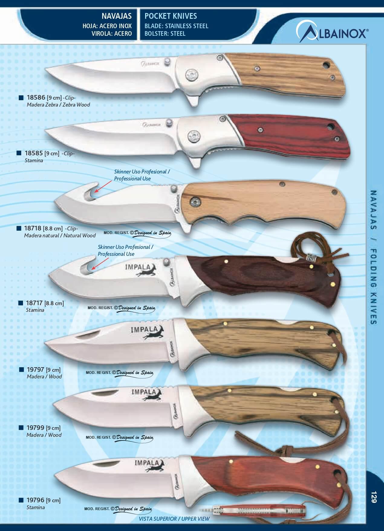 Navaja Albainox IMPALA con mango de madera zebra, virola de acero...