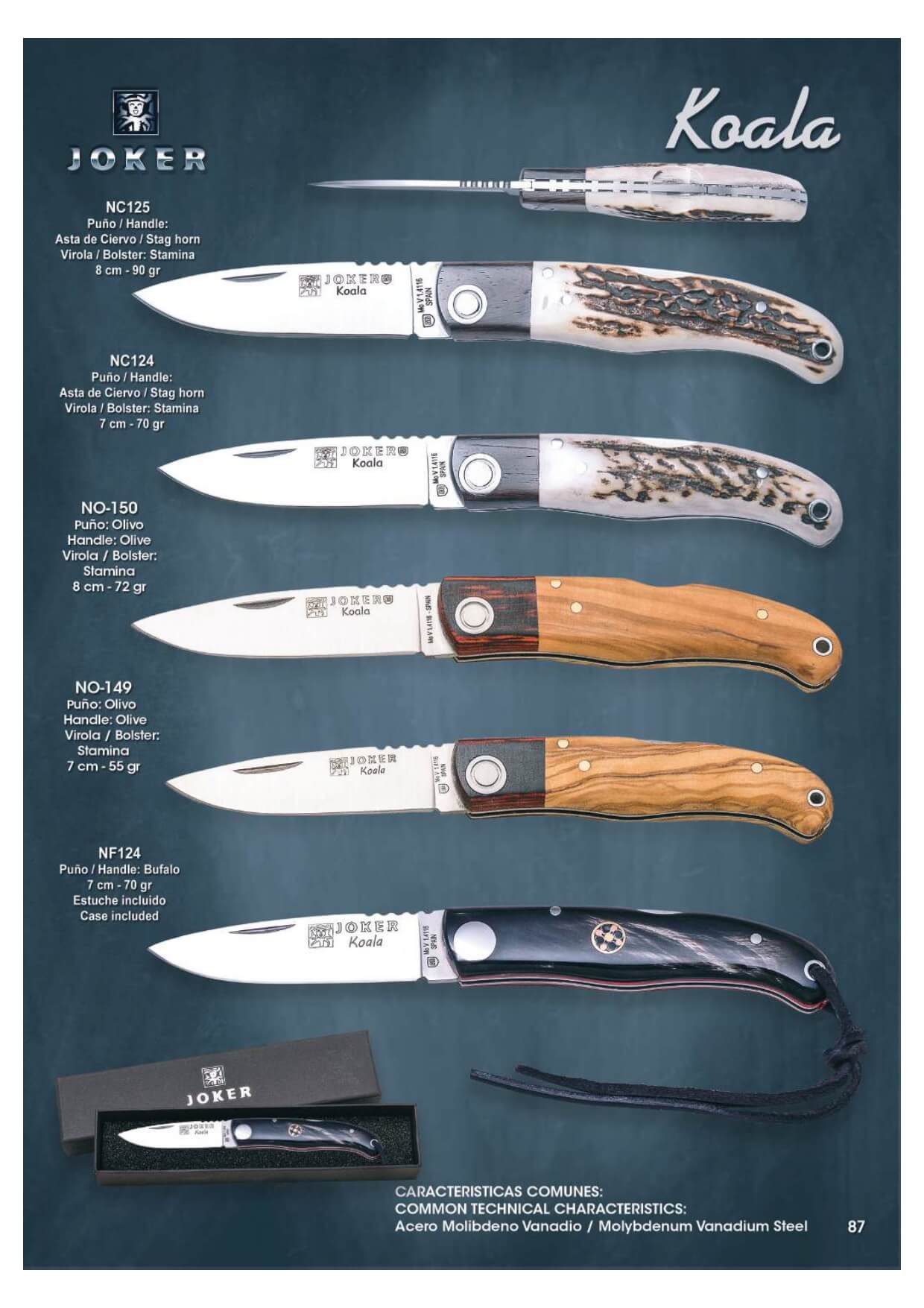 Navajas con hoja de acero Molibdeno Vanadio de 7 cm y bloqueo de botón trasero. Agujero para cordón fiador y cremallera en la parte trasera de la hoja para un mejor agarre.