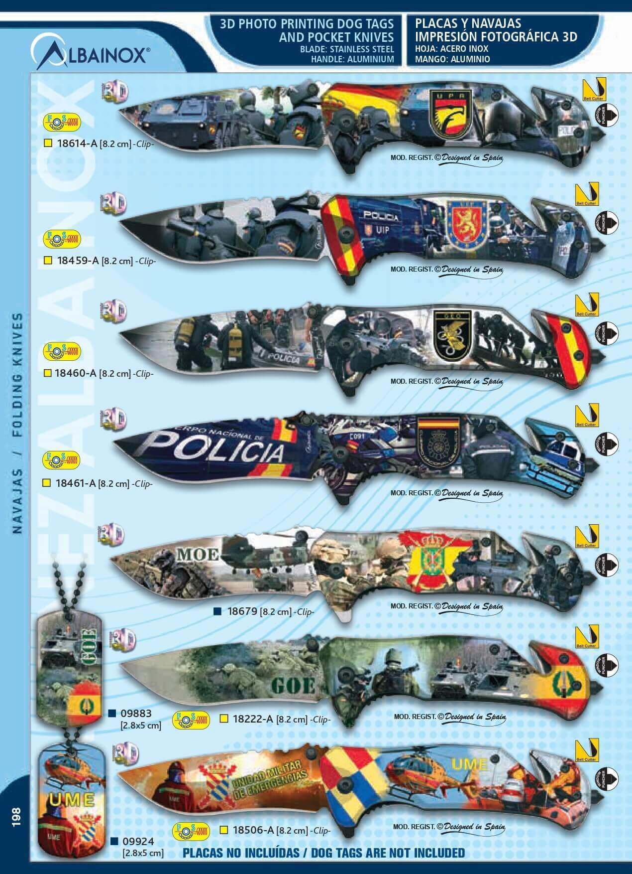 Navajas tácticas con corta-cinturón y punta rompe vidrios. Navajas militares con impresión 3D: Hojas de acero inox de 8.2 cm.Bloqueo de línea.