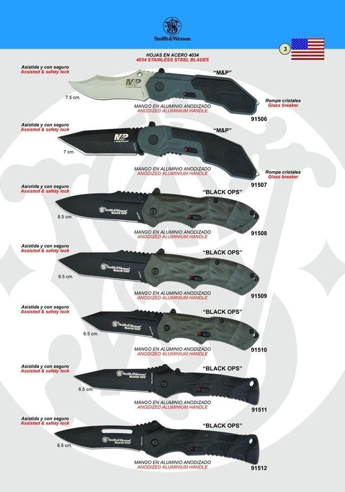 Navajas con hojas en acero 4034 y mango en aluminio anodizado.