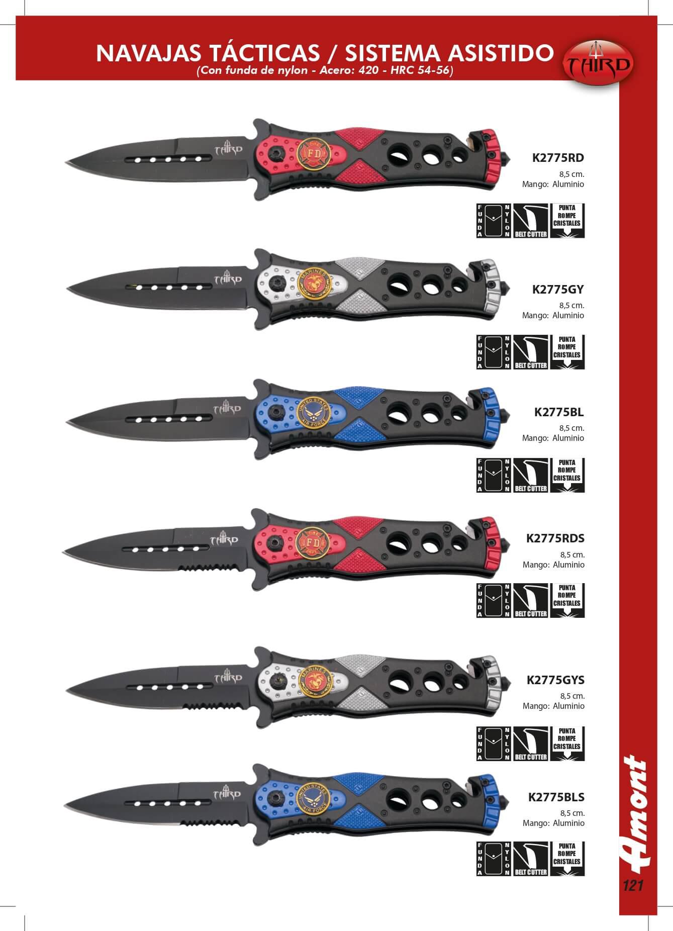 Navajas tácticas de sistema asistido y mango de aluminio.