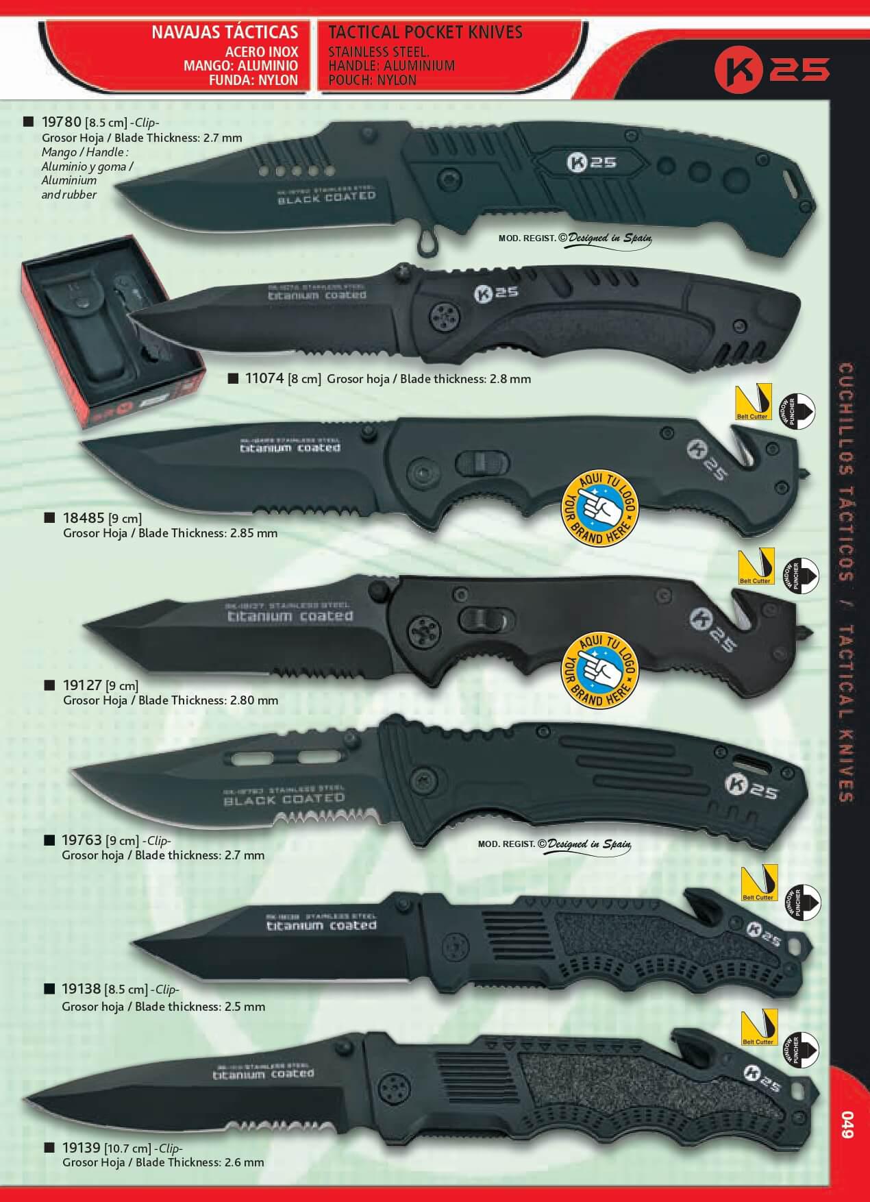 Navaja táctica K25 con funda de nylon, clip, corta cinturones y h...