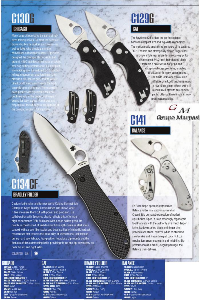 Navajas Tácticas Spyderco Value Folders.C130G - Navaja Spyderco Chicago.C129G - Spyderco Cat.C134CF - Spyderco Bradley Folder.C141 - Spyderco Balance.