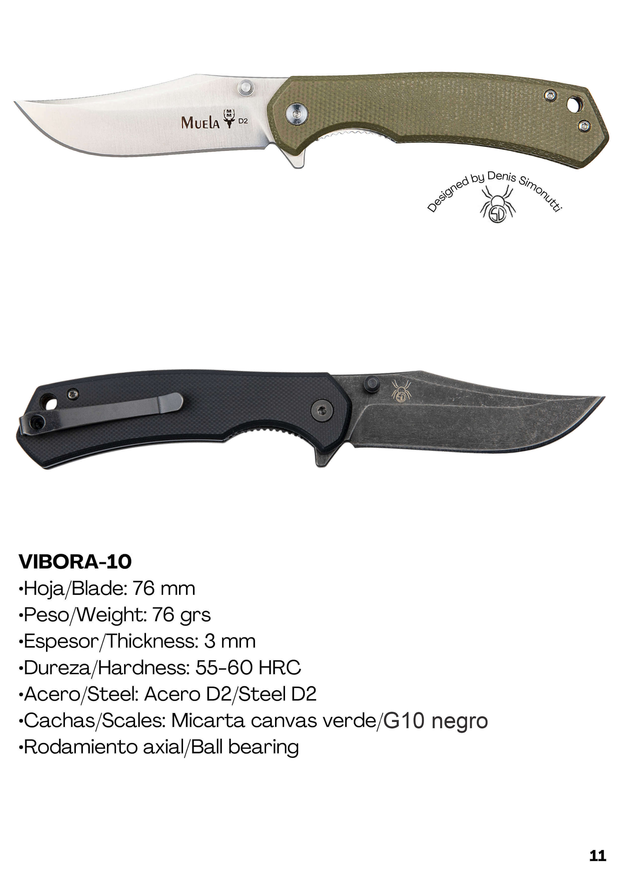 Navaja táctica Muela Vibora diseñada por Denis Simonutti.