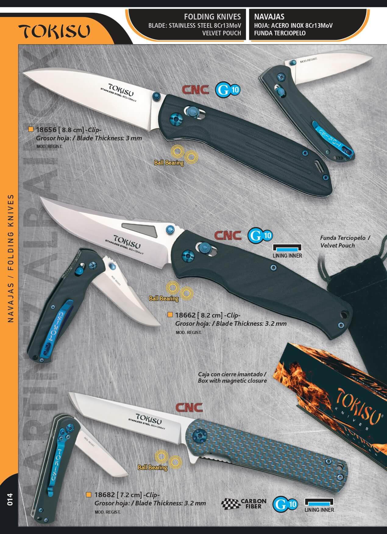 18682: Navaja TOKISU, con hoja de 7.20 cm y mango de G10 y Fibra Carbono Azul