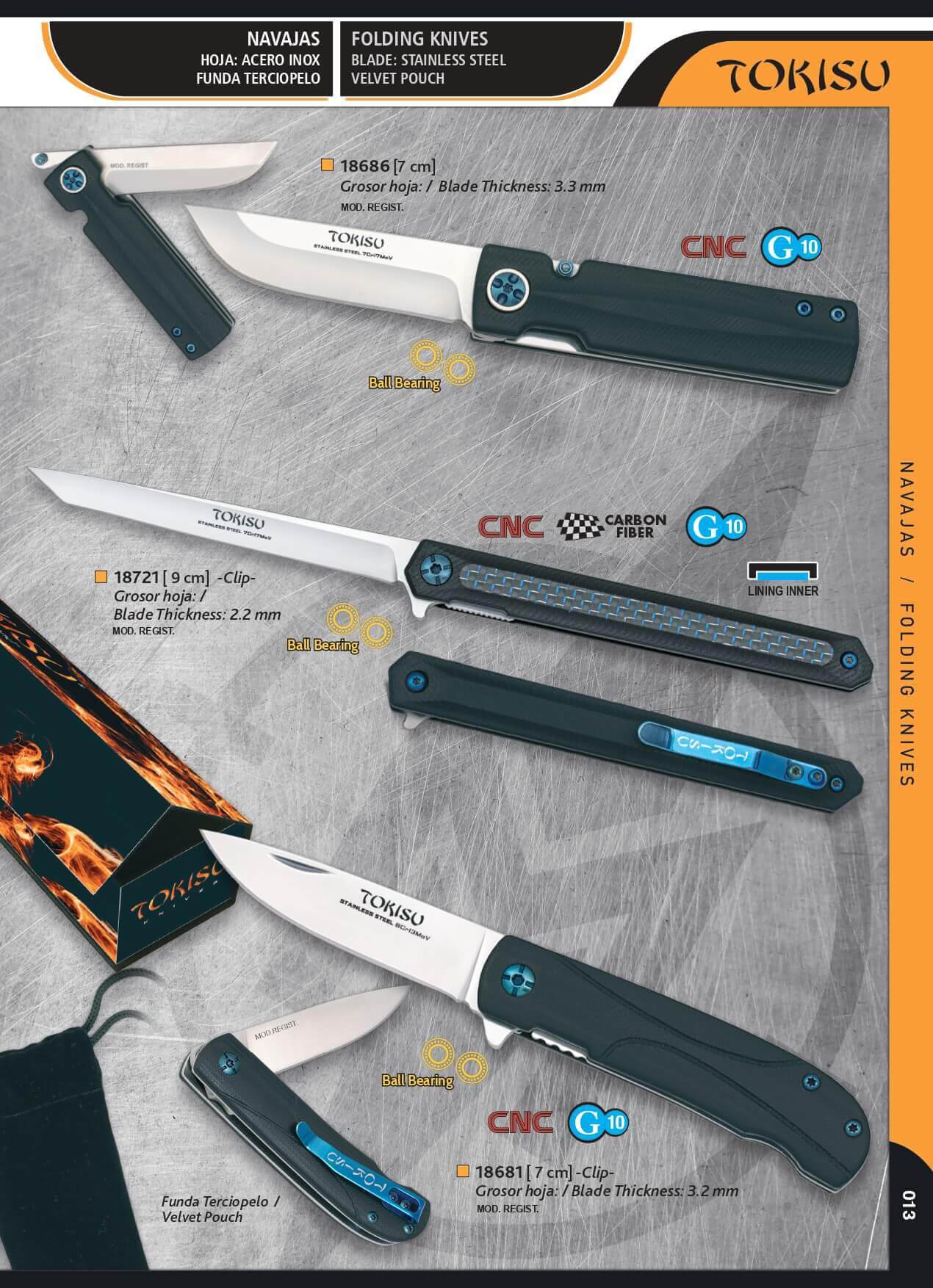 18686: Navaja táctica TOKISU, con hoja de 7.00 cm y mango de G10 Negro