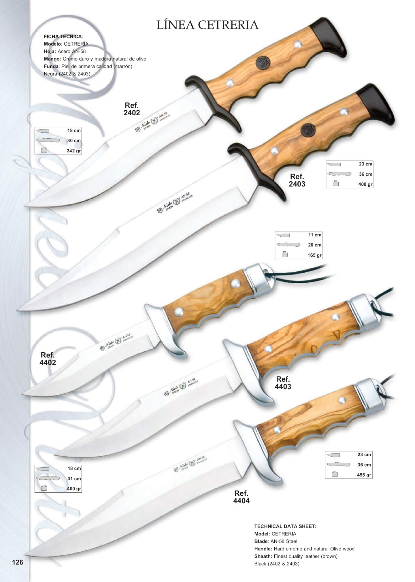 Longitud de la hoja: 23 cm. Longitud total: 36 cm. Peso: 465 grs.
