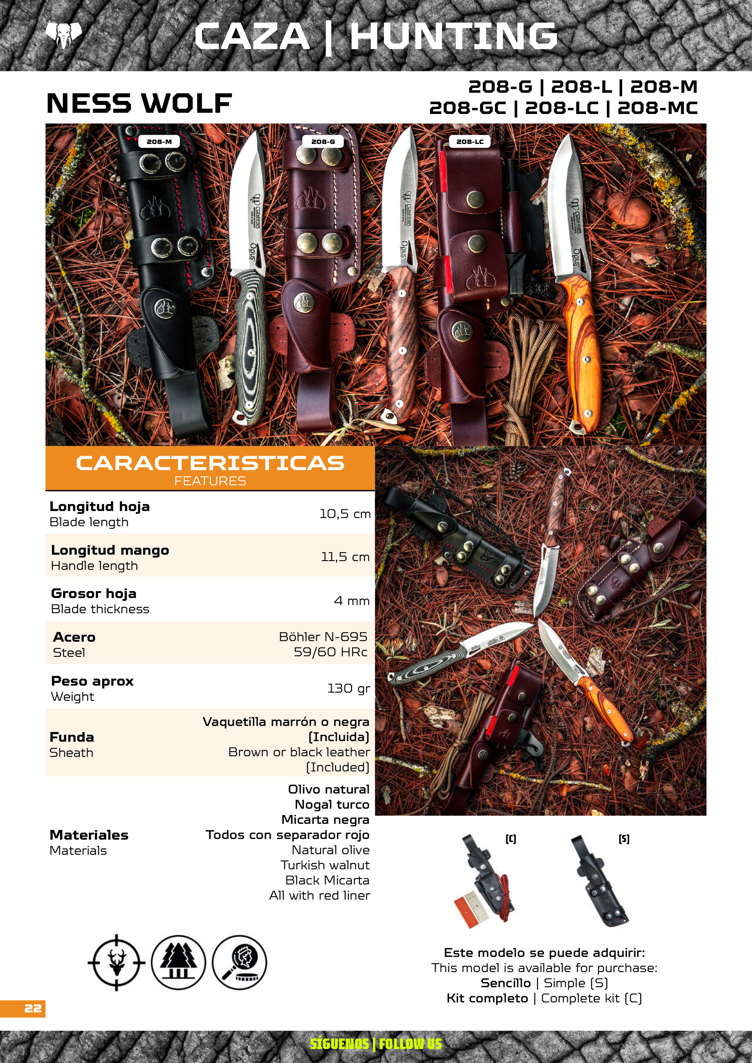 Colección de cuchillos tipo Nessmuk realizados por Opus Knives y Cudeman. Este tipo de cuchillos sirven tanto para caza cómo outdoor.