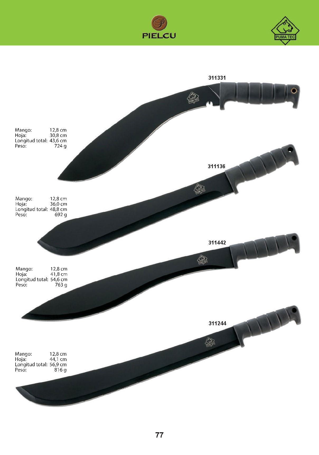 Machetes de la marca Puma Tec con hoja de acero AISI 420 cromado y mango de caucho antideslizante.