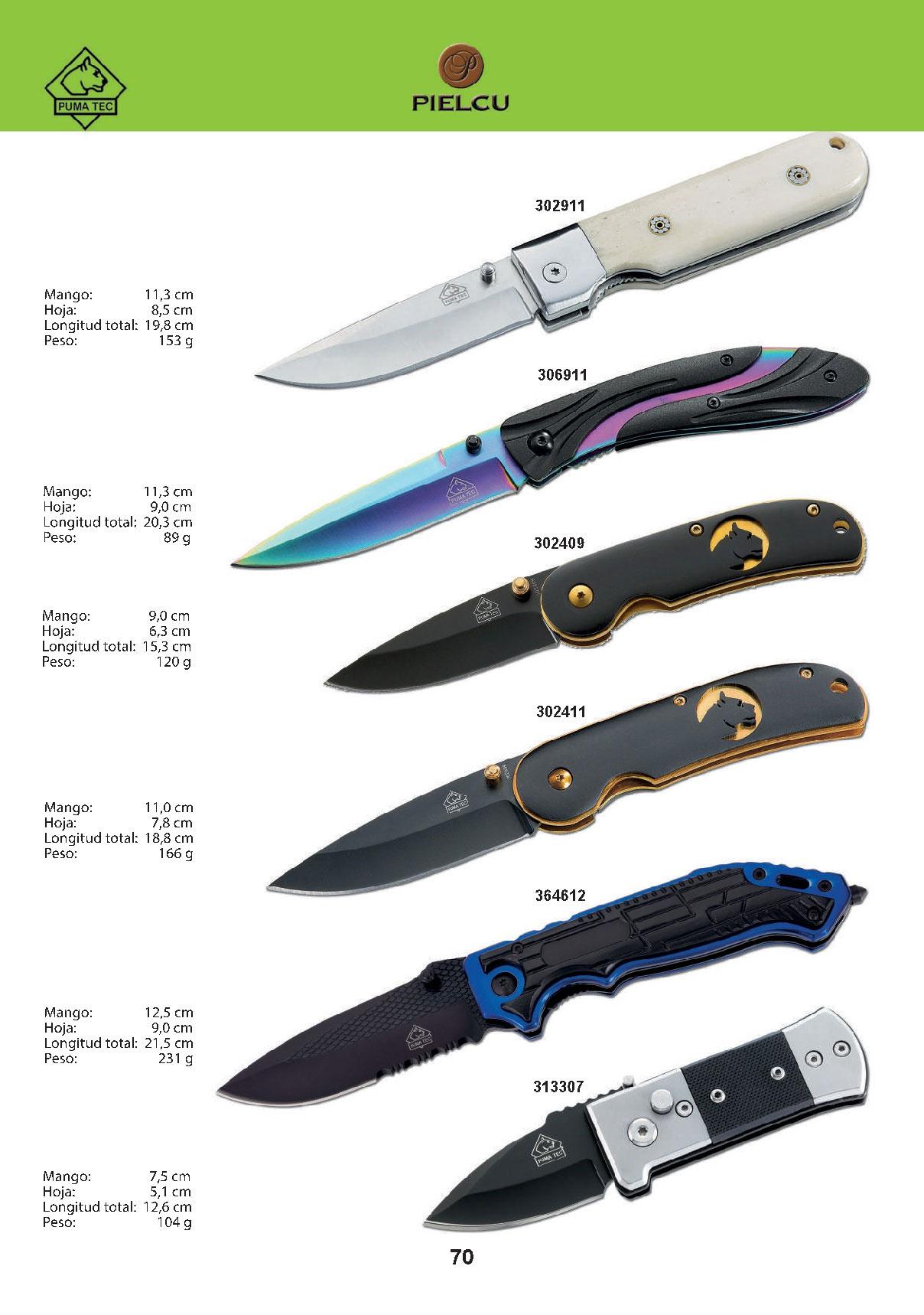 Navajas tácticas con mango de madera antideslizante, aluminio y tuya, ébano y acero o alpaca y hoja de acero AISI 420.