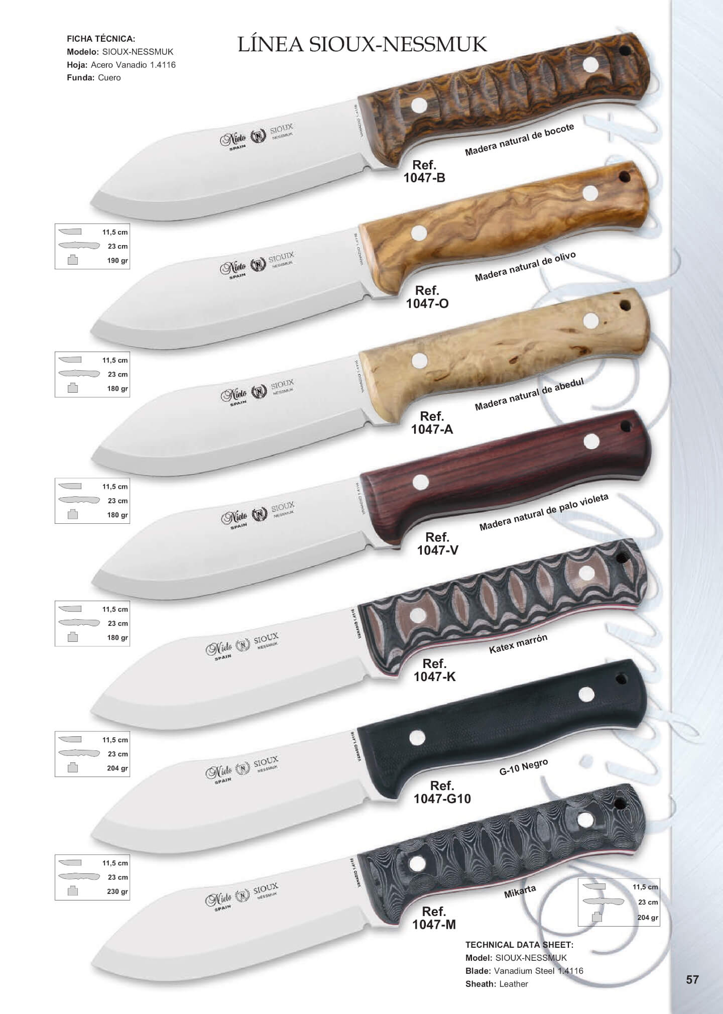 Nuevo cuchillo de caza Nieto con hoja de acero Molibdeno Vanadio de 11.3 cm y funda de cuero.