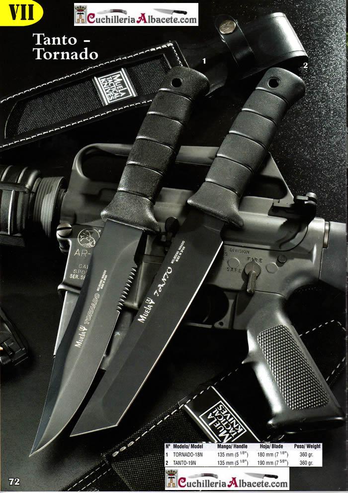 Cuchillo táctico Muela Tanto-19N con mango de goma negra y hoja n...