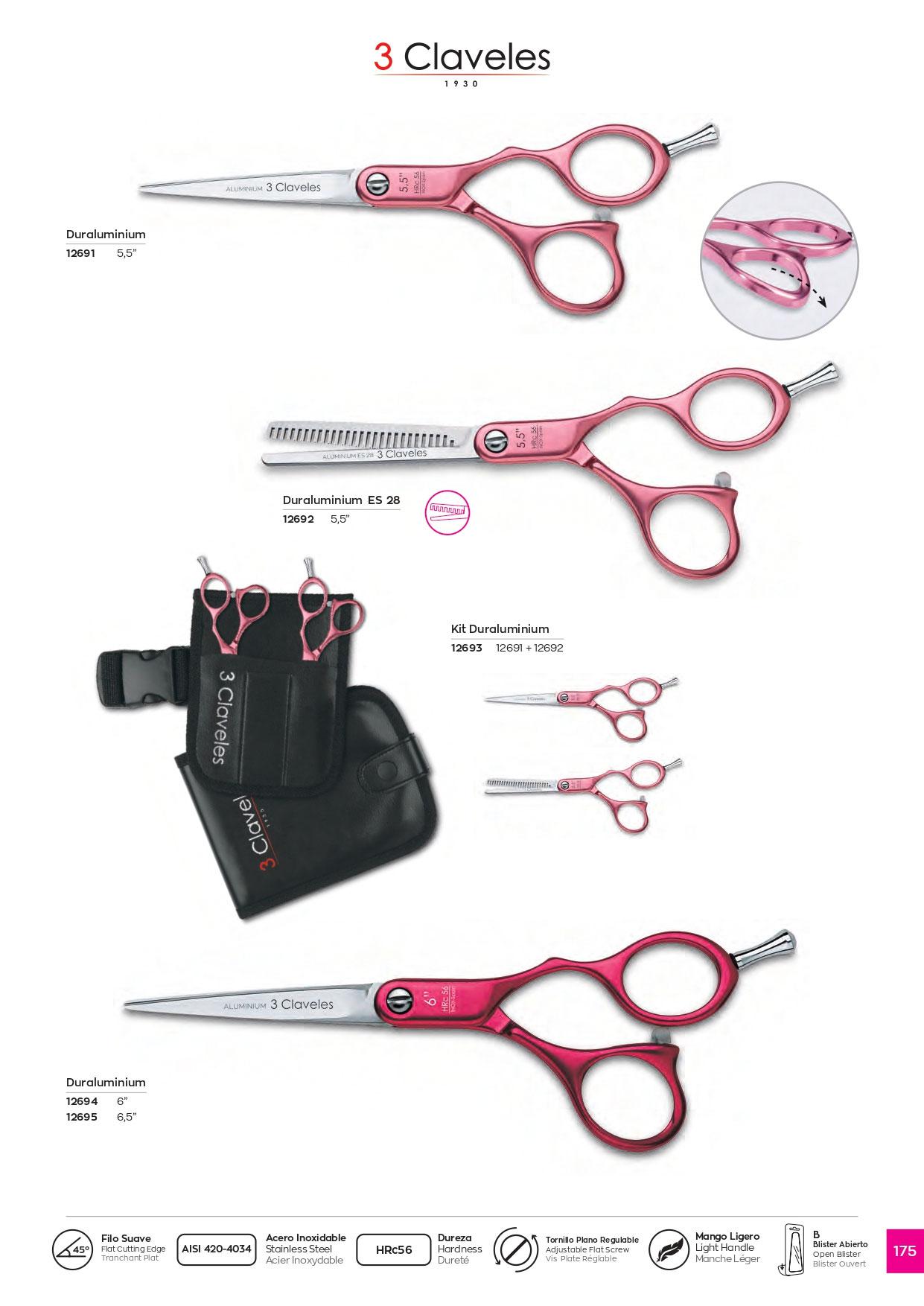 Tijera peluquero Duraluminium ES28 6" para esculpir 3 Claveles