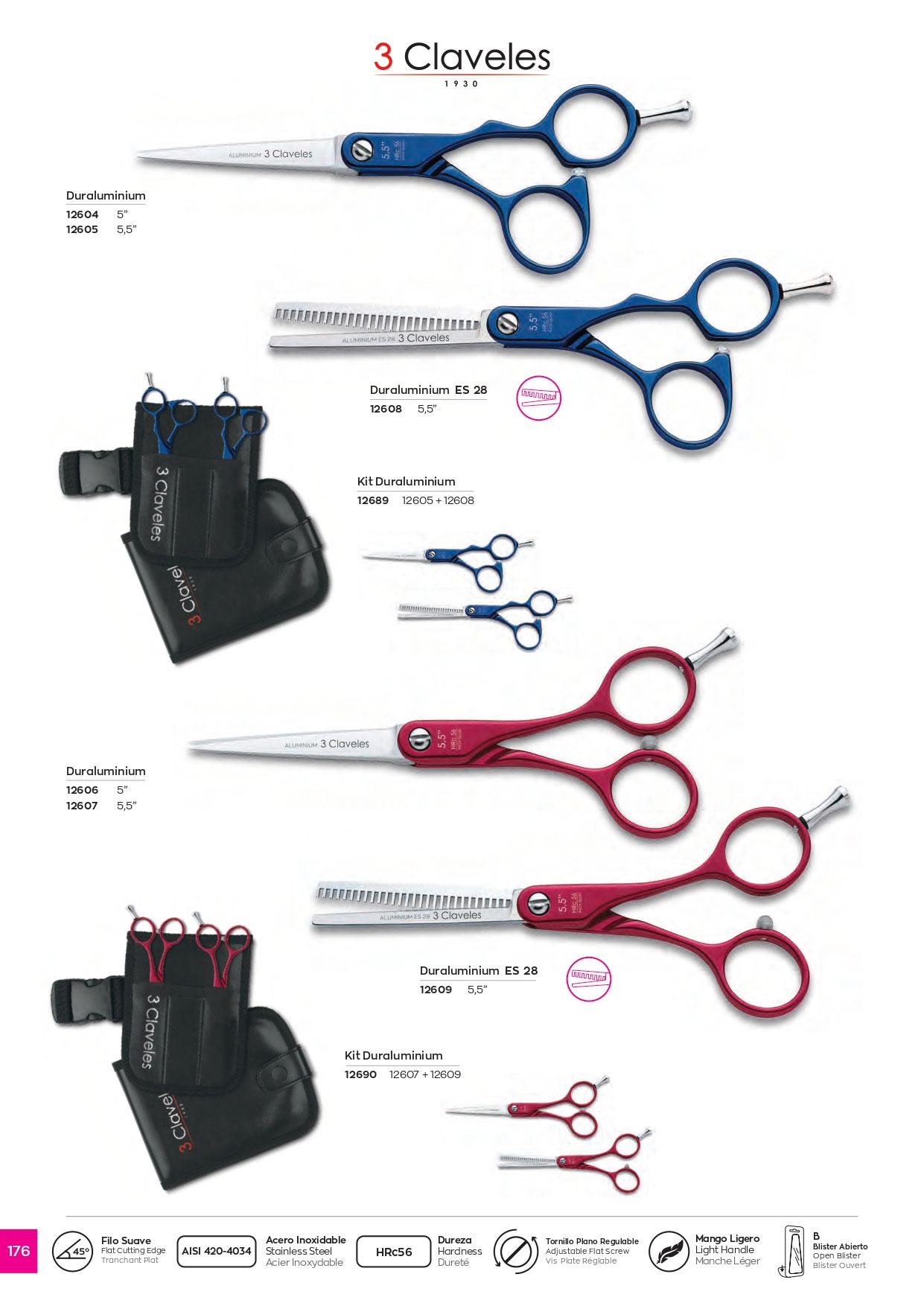 Kit peluquería Duraluminium azul 5.5" con filo suave 3 Claveles