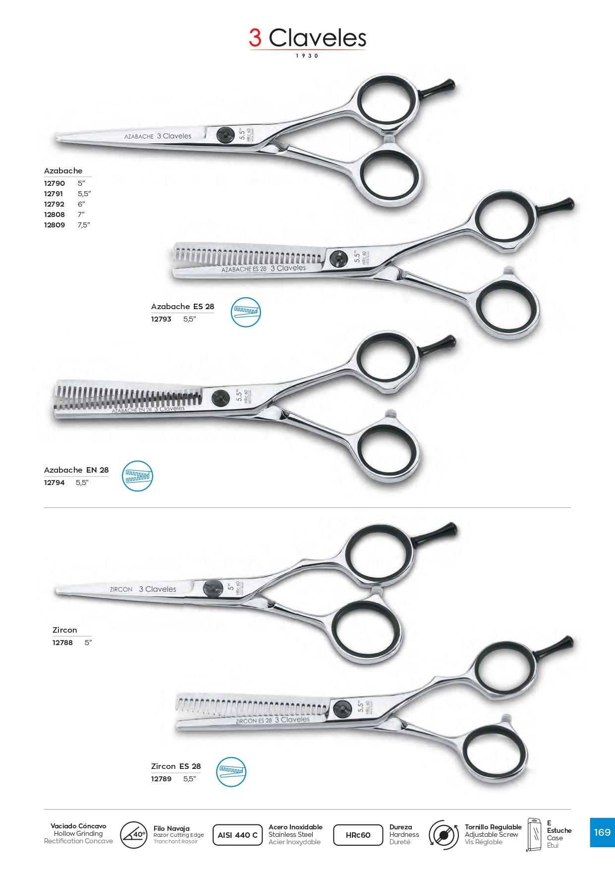 Tijera de peluqueria Azabache EN28 5.5" con filo navaja 3 Clavele...