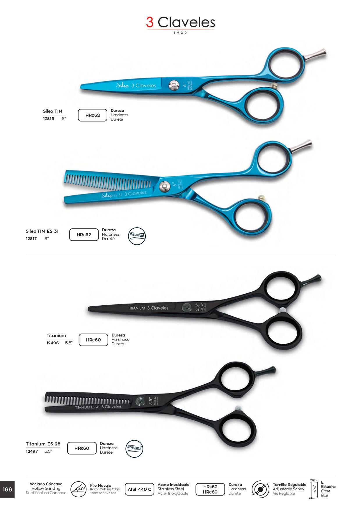 TIjeras de peluquería profesionales, acero 440. Dureza HRc62. Vaciado cóncavo. Filo de navaja