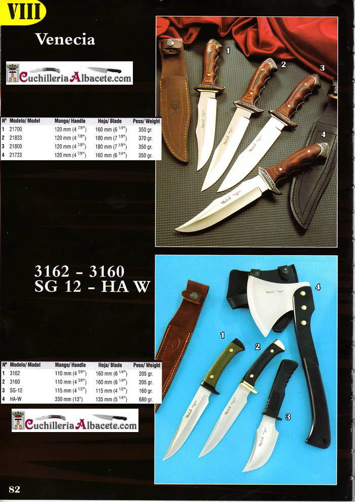 Cuchillos con puño de madera, puño cachas verdes o hacha de campo.