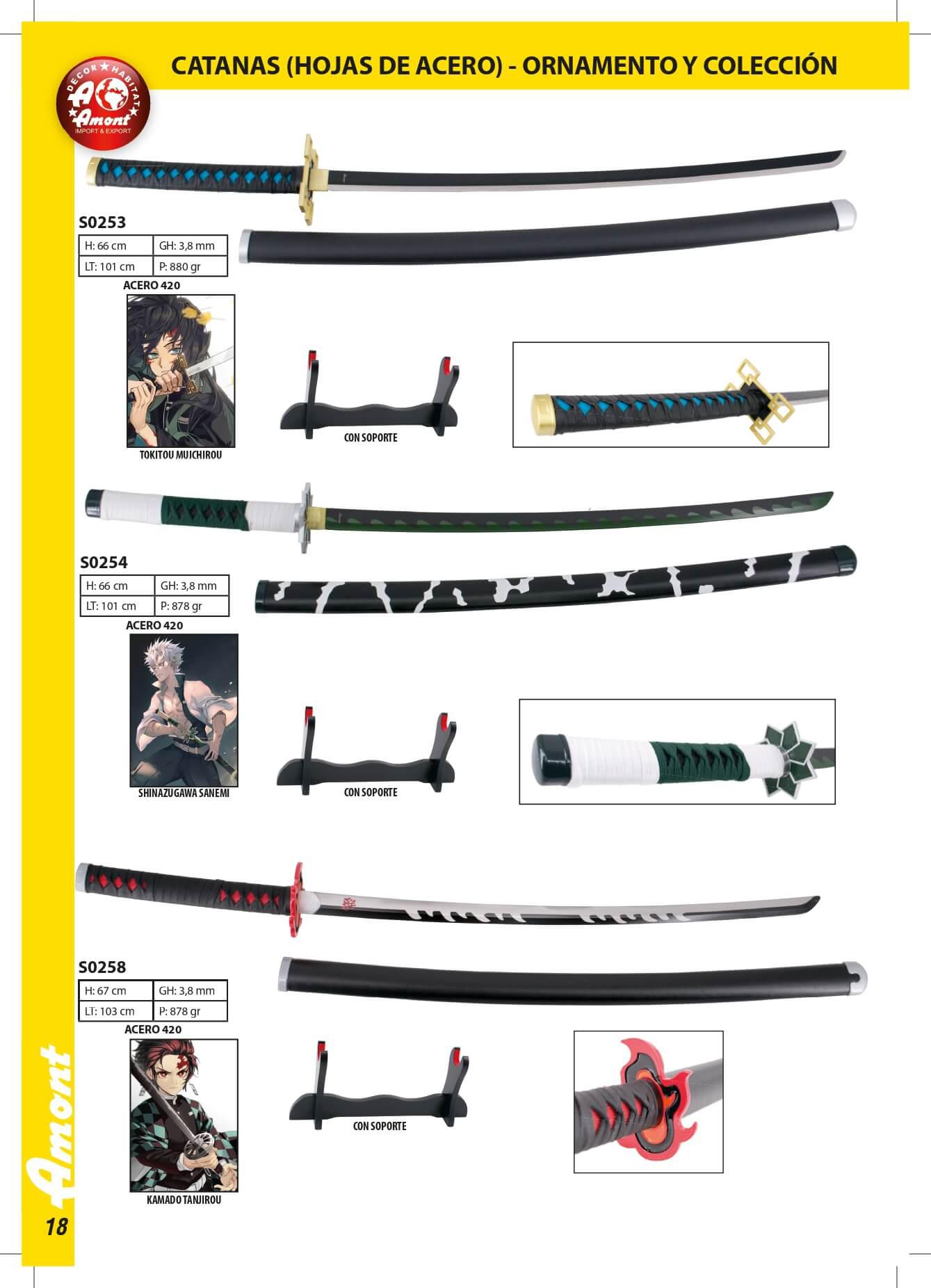 Katanas Demon SlayerBlade length: 66 cm. Total length: 101 cm. - S0253: Tokitou Muichirou - S0254: Shinazugawa Sanemi