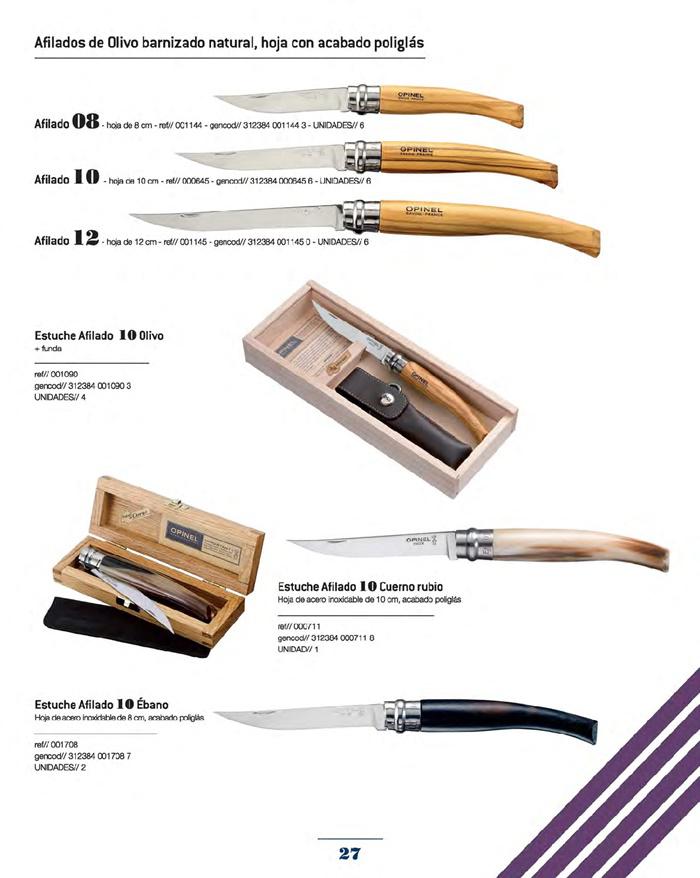 Natural varnished olive handle. Stainless steel blade with polyglass finish.
